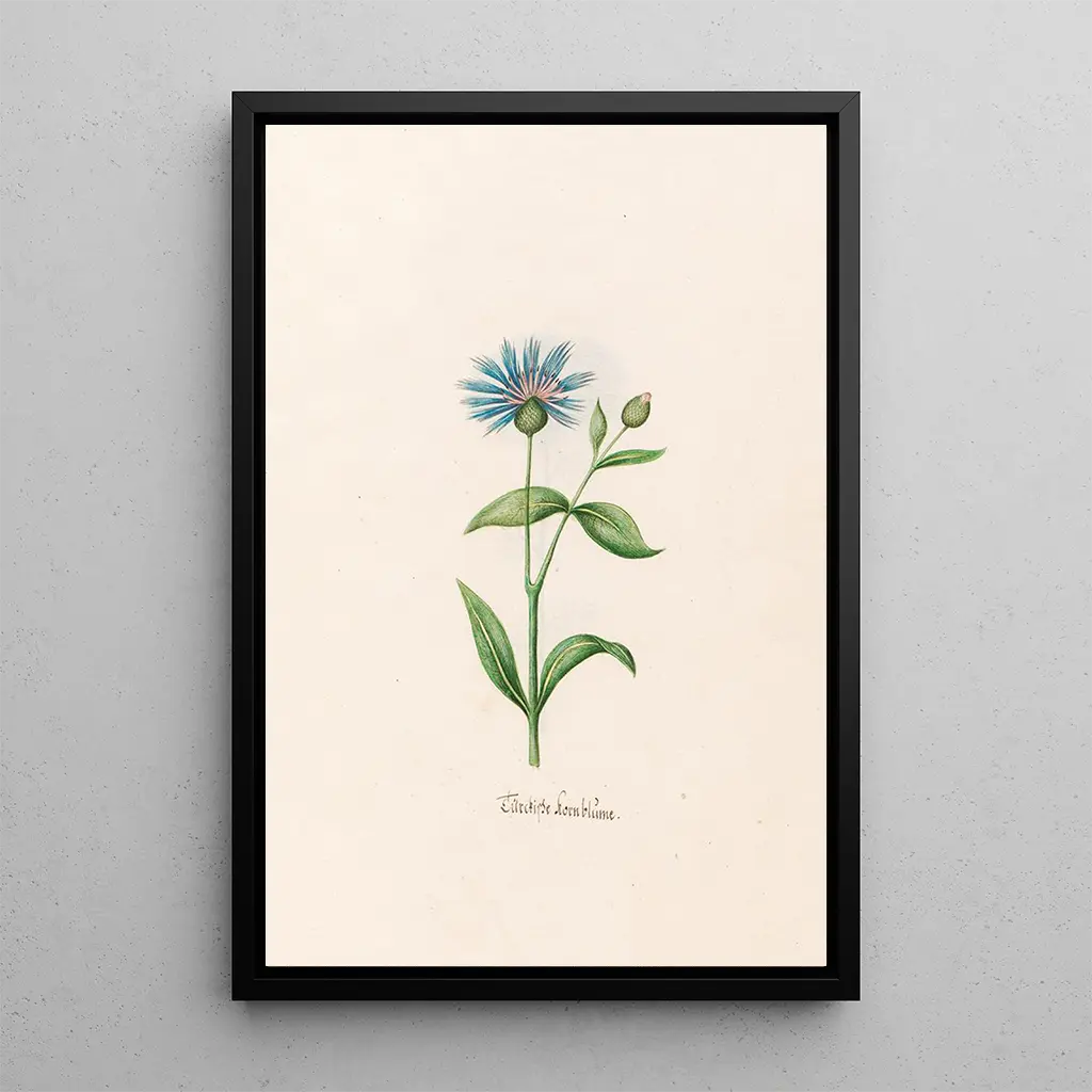 Bleuet turc : een dans van kleuren en licht De kunstdruk van het Bleuet turc van Magdalena Rosina Funck roept een veld van stralende bloemen op, waar het heldere blauw van de bloemblaadjes zich mengt met accenten van groen en geel. Dit werk, vervaardigd met een delicate aquareltechniek, geeft een gevoel van lichtheid en frisheid weer. De heldere nuances en de minutieuze details van de bloemen trekken de aandacht en nodigen uit tot langdurige contemplatie. Funck slaagt erin de vergankelijke schoonheid van de natuur te vereeuwigen, door een eenvoudige blauwe bloem om te toveren tot een waar kunstwerk, symbool van vreugde en vitaliteit. Magdalena Rosina Funck : een kunstenaar met een hart voor botanica Magdalena Rosina Funck is een invloedrijke figuur uit de 19e eeuw, bekend om haar botanische illustraties. Haar werk past binnen een context waarin kunst en wetenschap samenkomen, wat de groeiende interesse voor de natuur en haar studie weerspiegelt. Geïnspireerd door naturalistische bewegingen, wist Funck wetenschappelijke precisie te combineren met artistieke gevoeligheid, en bood ze getrouwe weergaven van bloemen. Hoewel ze minder bekend is dan sommige van haar tijdgenoten, is haar nalatenschap op het gebied van botanische illustratie onmiskenbaar, en blijven haar werken kunstenaars en natuurliefhebbers inspireren. Een decoratieve aanwinst met vele voordelen De kunstdruk van het Bleuet turc is een slimme decoratieve keuze voor alle liefhebbers van natuur en kunst. Of u het nu in een woonkamer, kantoor of slaapkamer wilt hangen, dit schilderij brengt een vleugje kleur en dynamiek in uw ruimte. De afdrukkwaliteit garandeert een opmerkelijke fideliteit aan de details van het originele werk, zodat u volop kunt genieten van de schoonheid van Funck. Door deze doek in uw inrichting te integreren, voegt u niet alleen een esthetisch element toe, maar ook een uitnodiging tot dromen en ontsnapping.