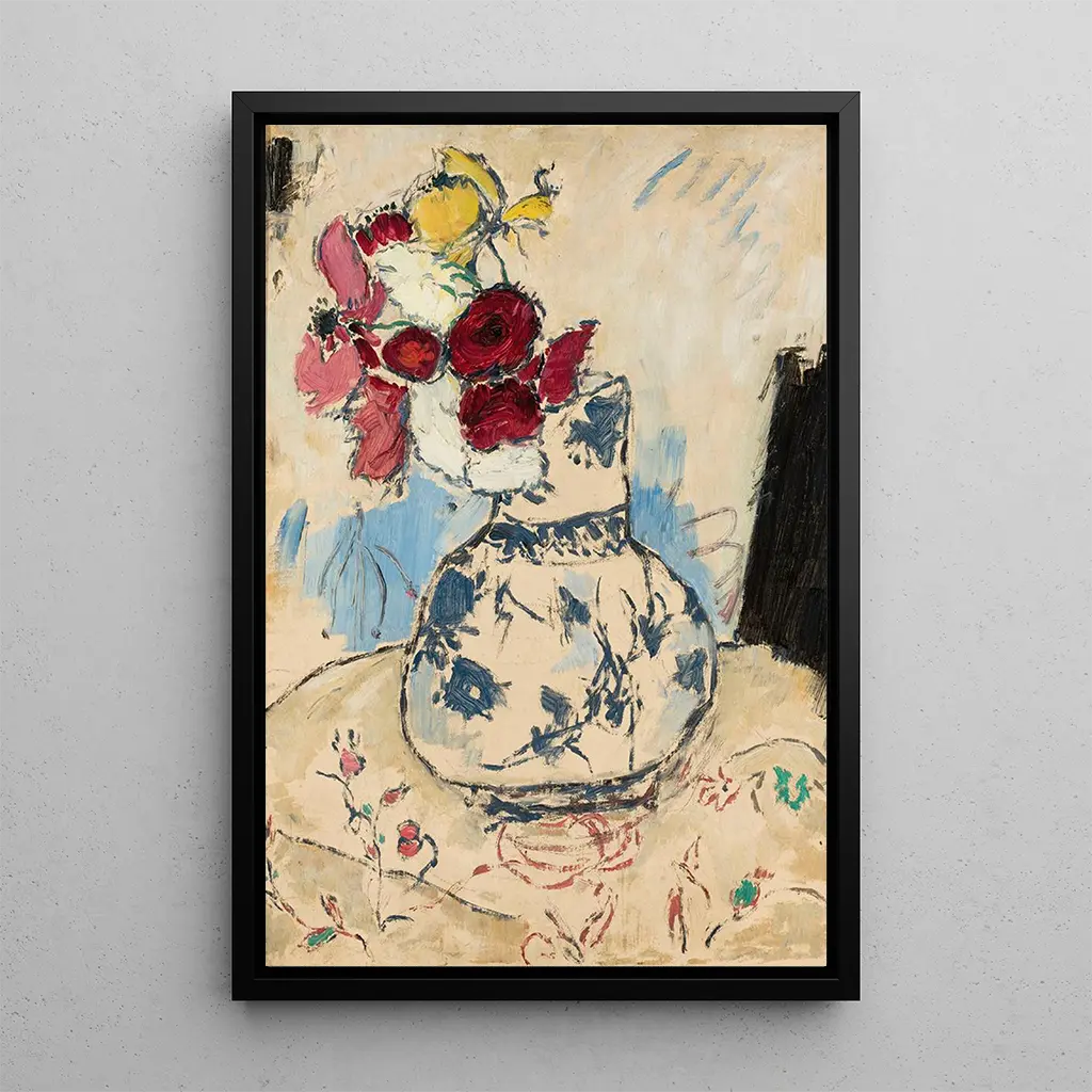 Tadeusz Makowski, artiste polonais du début du XXe siècle, a su capturer l’essence de son époque à travers son style unique, alliant modernisme et influences traditionnelles. Élevé dans un environnement artistique, il a été marqué par les mouvements avant-gardistes européens, notamment le cubisme et le fauvisme. Sa carrière, bien que courte, a laissé une empreinte indélébile sur la scène artistique polonaise. Makowski a souvent exploré des thèmes de la nature et de la vie quotidienne, transformant des scènes ordinaires en œuvres d’art vibrantes et poétiques. Son travail, dont Fleurs dans un vase est un parfait exemple, témoigne de son habileté à marier technique et émotion.