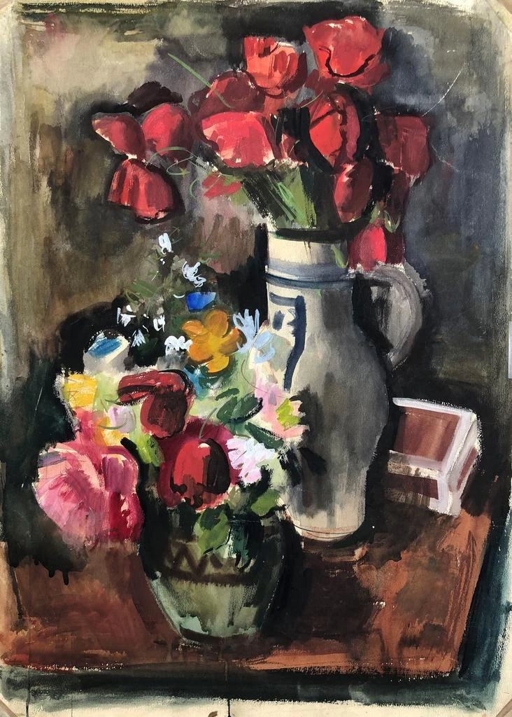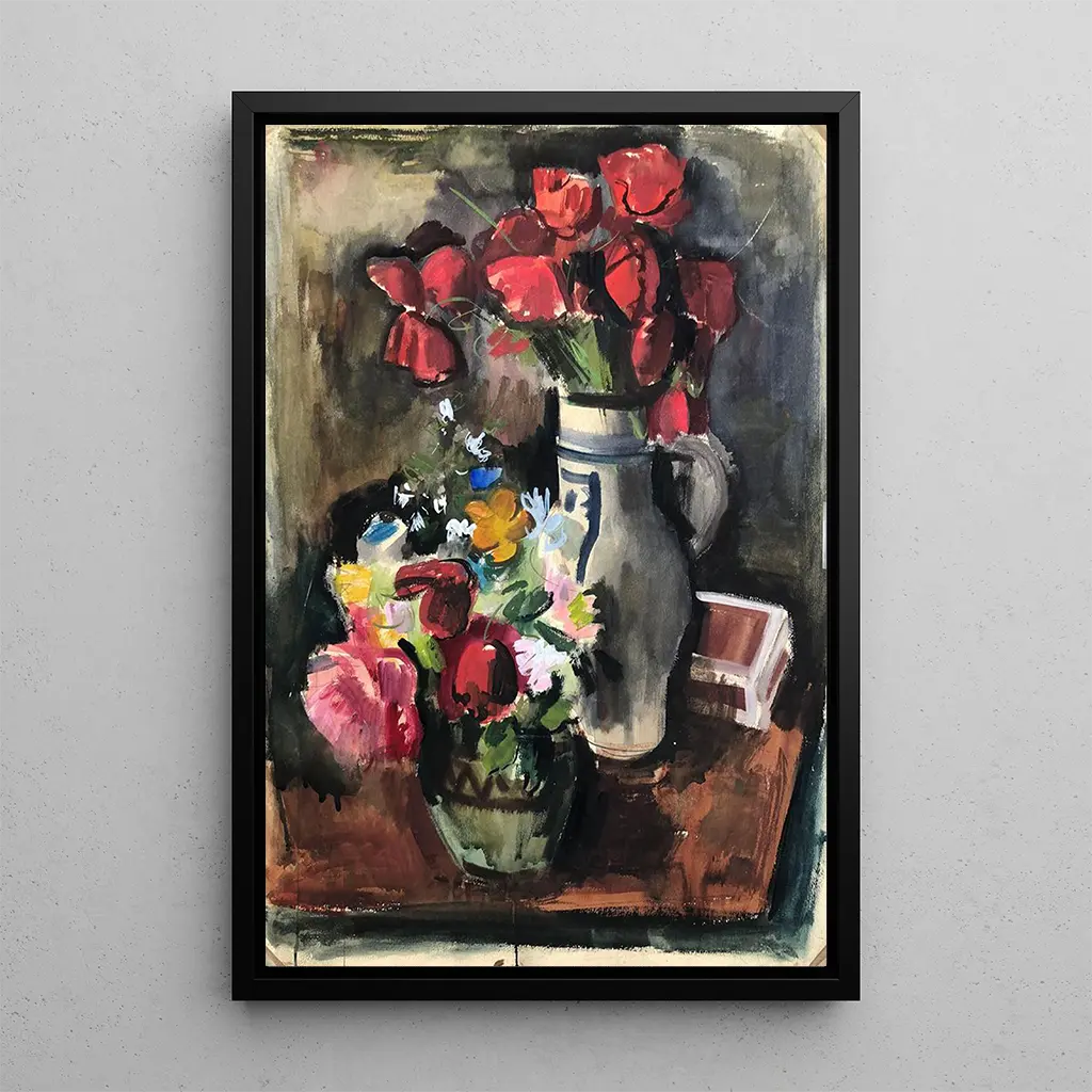 De kunstdruk "Bouquet de fleurs sur la table" brengt ons naar een moment van sereniteit en natuurlijke schoonheid. De bloemstukken, rijk aan kleuren en texturen, roepen een perfecte harmonie op tussen de verschillende bloemensoorten. De levendige tinten, variërend van diepe roodtinten tot heldere geeltonen, creëren een vrolijke en levendige sfeer. Otto Geigenberger gebruikt een olieverftechniek waarmee hij licht en schaduw kan vastleggen, waardoor elke bloemblad en blad tot leven komt. Dit kunstwerk nodigt uit om de vergankelijke schoonheid van de natuur te waarderen, terwijl het een vleugje frisheid aan ons dagelijks leven toevoegt.