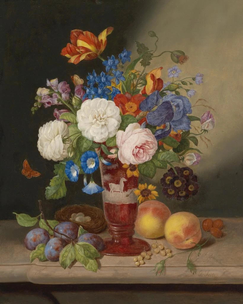 Bloemenboeket in een vaas - Johann Georg Seitz