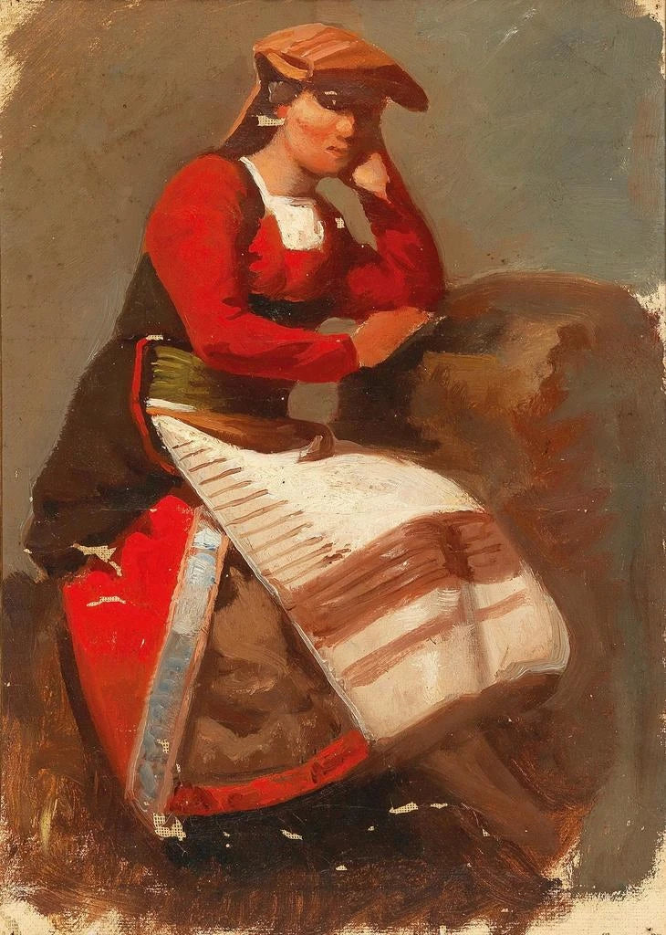 Vincenzo Cabianca, Italiaanse schilder uit de 19e eeuw, wordt vaak geassocieerd met de realistische beweging. Geboren in 1827 in Verona, was hij beïnvloed door de grote meesters van de Italiaanse schilderkunst en door de artistieke stromingen van zijn tijd. Cabianca wist het dagelijks leven met een unieke gevoeligheid vast te leggen, met de nadruk op landelijke scènes en bescheiden personages. Zijn werk, hoewel minder bekend dan dat van sommige tijdgenoten, is essentieel om de evolutie van de realistische kunst in Italië te begrijpen. Door zijn schilderijen beeldt hij een periode af waarin de natuur en het werk op het land een centrale rol speelden in het leven van de mensen.