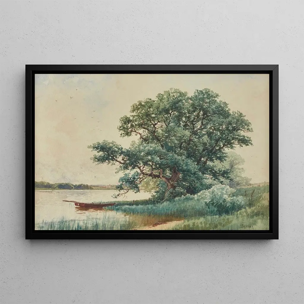 "Barque sur une Rivière" van Alfred Thompson Bricher roept een rustige scène op waarin een bootje zachtjes over de kalme wateren van een rivier glijdt. De fonkelende reflecties op het wateroppervlak, gecombineerd met levendige tinten blauw en groen, creëren een sfeer van sereniteit en contemplatie. De minutieuze details van de bomen en de omliggende heuvels voegen een dimensie van diepte toe aan de compositie. Dit kunstwerk nodigt de kijker uit zich voor te stellen dat hij in de boot zit, genietend van een moment van rust te midden van de natuur, ver weg van de drukte van het dagelijks leven. Alfred Thompson Bricher: een pionier van het Amerikaanse landschap Alfred Thompson Bricher, actief in de 19e eeuw, is een Amerikaanse schilder bekend om zijn maritieme en rivierlandschappen. Geïnspireerd door de Hudson River School-beweging, wist hij de natuurlijke schoonheid van de Verenigde Staten vast te leggen met een unieke gevoeligheid. Zijn werken onderscheiden zich door hun helderheid en aandacht voor detail, wat zijn liefde voor de natuur weerspiegelt. "Barque sur une Rivière" past binnen deze traditie en benadrukt de harmonie tussen mens en omgeving. Bricher speelde een sleutelrol in de ontwikkeling van de Amerikaanse landschapskunst, en zijn doeken blijven kunstliefhebbers inspireren. Een decoratief stuk met vele voordelen De kunstdruk van "Barque sur une Rivière" is een perfect decoratief item voor elke ruimte, of het nu een woonkamer, kantoor of slaapkamer is. De afdrukkwaliteit garandeert een uitzonderlijke fideliteit aan de nuances en details van het originele kunstwerk, waardoor u ten volle kunt genieten van de schoonheid van deze rustige scène. De esthetische aantrekkingskracht van dit doek ligt in zijn vermogen om een rustgevende en inspirerende sfeer aan uw interieur toe te voegen. Door te kiezen voor deze kunstdruk, geeft u uw ruimte een vleugje elegantie en sereniteit, terwijl u tegelijkertijd de kunst en de natuur viert.