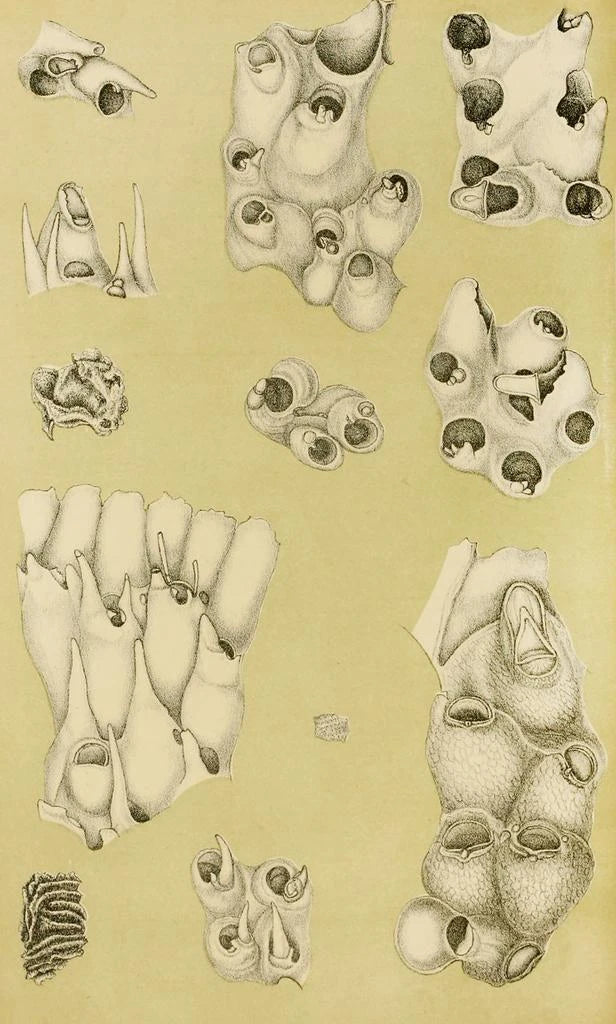 Frederick McCoy, figure emblématique du XIXe siècle, a su marier art et science à travers ses illustrations de bryozoaires. Sa formation en paléontologie lui a permis de réaliser des œuvres d'une précision remarquable, tout en véhiculant une esthétique unique. Influencé par les avancées scientifiques de son temps, McCoy a contribué à l'émergence d'une nouvelle approche artistique, où la représentation des organismes marins devient une véritable exploration visuelle. Son travail a non seulement enrichi la connaissance scientifique, mais a également ouvert la voie à une appréciation artistique des merveilles de la biologie marine.