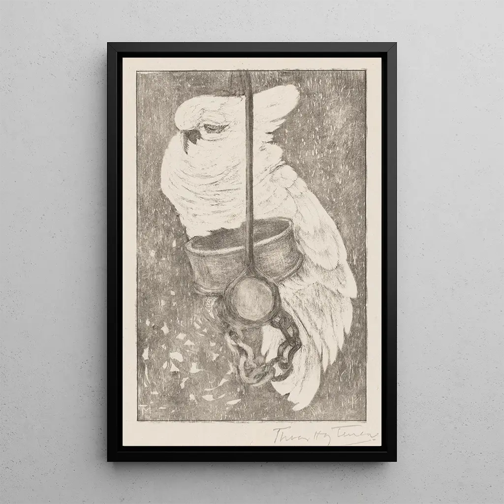 De kunstdruk van de cacatoès blanc van Theo van Hoytema is een ware ode aan de schoonheid van exotische vogels. Met zijn sprankelende verenkleed en levendige blik wordt deze vogel afgebeeld met opmerkelijke fijnheid. De felle kleuren en de gedetailleerde veren creëren een levendige sfeer, bijna levend. De compositie, gericht op de vogel, trekt onmiddellijk de aandacht en nodigt uit tot bewondering. Het werk roept een gevoel van vrijheid en verwondering op, en transporteert de kijker naar een wereld waar de natuur heerst.
