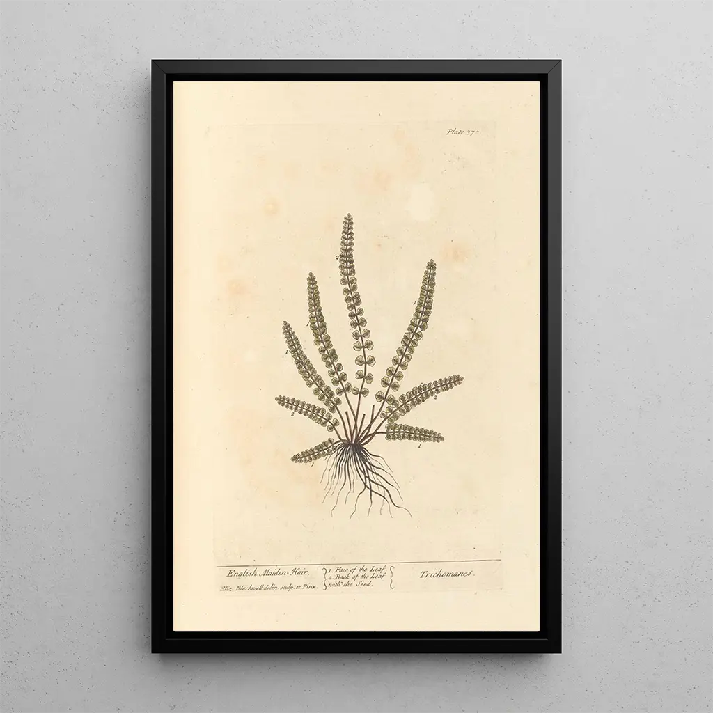 Het kunstdruk "Capillaire de Montpellier" van Elizabeth Blackwell is een werk dat de essentie van de botanica vastlegt door middel van een minutieuze en poëtische voorstelling. De zachte en natuurlijke kleuren, variërend van tere groenen tot bruintinten, roepen de frisheid van planten op. De aquareltechniek die Blackwell gebruikt, maakt het mogelijk om fijne en delicate details te creëren, waardoor deze iconische plant tot leven komt. De sfeer die van dit doek uitgaat, nodigt uit tot een rustige contemplatie, waarbij elke blad lijkt te vibreren onder het licht. Dit werk is een ware viering van de schoonheid van de flora, een eerbetoon aan de natuur die ons omringt.