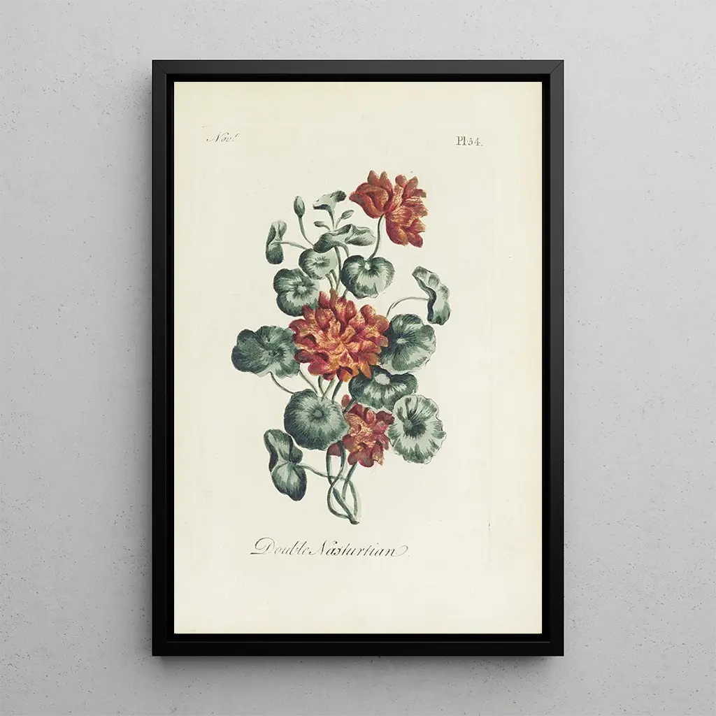 De kunstdruk van de Capucine dubbele dompelt ons onder in een levendige wereld waar warme en stralende tinten zich verweven. De bloemblaadjes, in een vurige oranje, lijken te dansen onder het licht, terwijl de groene bladeren een vleugje frisheid toevoegen aan deze bloemrijke compositie. De graveertechniek die door Carington Bowles wordt gebruikt, maakt het mogelijk om elk detail met opmerkelijke precisie weer te geven, waardoor een sfeer ontstaat die zowel vrolijk als rustgevend is. Dit kunstwerk nodigt uit tot contemplatie en roept de vergankelijke schoonheid van bloemen op, evenals hun vermogen om onze leefruimtes op te fleuren.