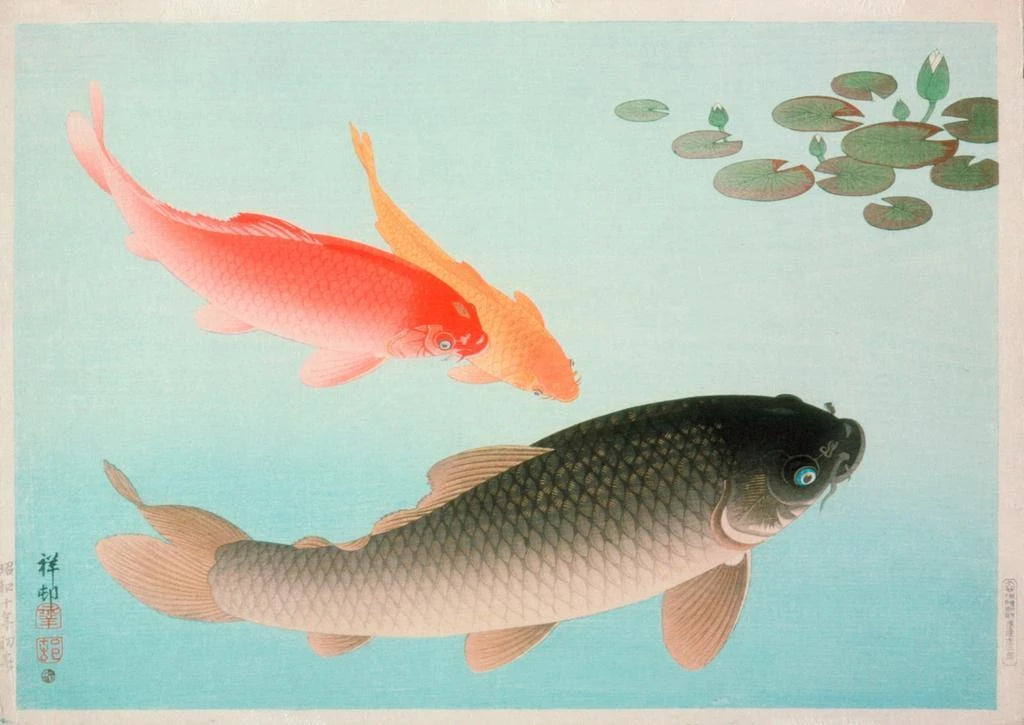 Gemeenschappelijke en vergulde karper - Ohara Koson