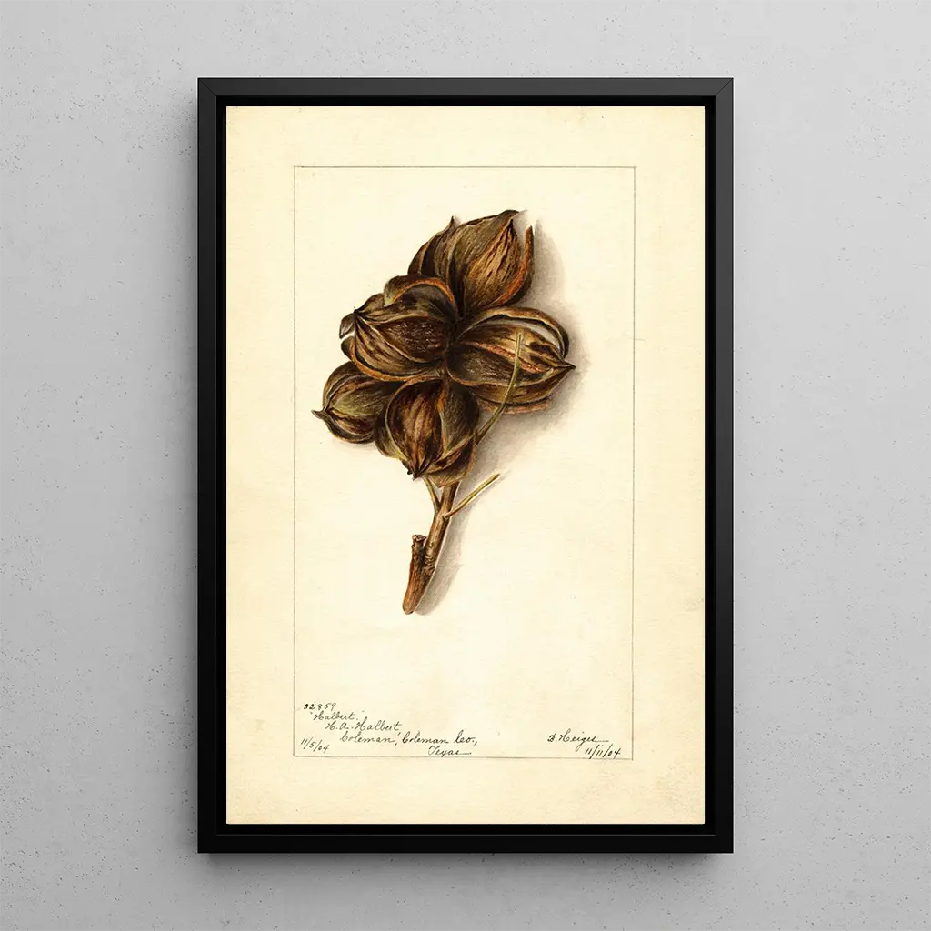 Carya Halberta, een boeiende kunstdruk van Bertha Heiges, roept een viering van de natuurlijke schoonheid op door middel van gestileerde vormen en levendige kleuren. Dit doek, rijk aan details, nodigt de kijker uit om onder te dompelen in een wereld waar de natuur wordt weergegeven met een delicate gevoeligheid. De nuances van groen en blauw mengen harmonieus, waardoor een serene en rustgevende sfeer ontstaat. De techniek van de kunstenaar, die olieverf en lichteffecten combineert, brengt deze kunstdruk tot leven, waardoor elk element bijna tastbaar wordt.