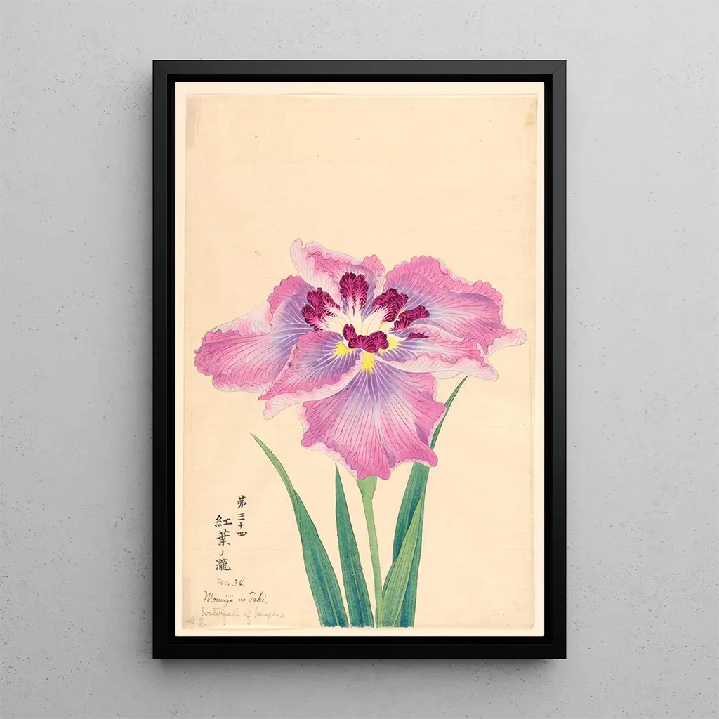 De kunstdruk van de Cascade van esdoorns Momiji no Taki roept een rustige scène op waarin de natuur zich in haar mooiste tinten hult. De esdoornbladeren, in heldere nuances van rood, oranje en geel, weerspiegelen in het kristalheldere water van een waterval. De ukiyo-e techniek, typisch voor de Japanse kunst, maakt het mogelijk de vloeiendheid van het water en de fijnheid van de bladeren vast te leggen. De sfeer die uit dit kunstwerk straalt, nodigt uit tot contemplatie en ontsnapping, en brengt de kijker naar een zen-tuin waar de tijd lijkt stil te staan.