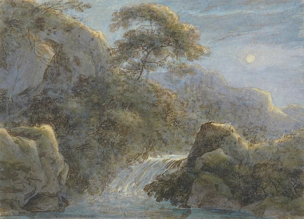 Waterval in de bergen bij maanlicht - Franz Kobell