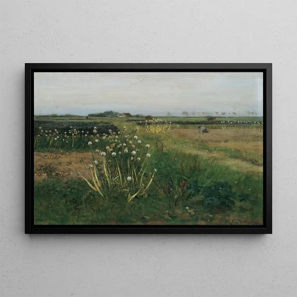 Champ d'oignons en fleurs : une célébration de la nature en pleine floraison Le tableau "Champ d'oignons en fleurs" d'Eugen Jettel est une ode à la beauté des paysages agricoles. Les oignons, en pleine floraison, se dressent fièrement sous un ciel lumineux, créant un contraste saisissant entre les teintes vertes des tiges et les nuances délicates des fleurs. La technique impressionniste de Jettel, caractérisée par des coups de pinceau vifs et des couleurs éclatantes, transmet une atmosphère joyeuse et vivante. Ce tableau invite à une contemplation sereine, où la nature se révèle dans toute sa splendeur, offrant un moment de paix et de beauté. Eugen Jettel : un peintre de la vie rurale Eugen Jettel, actif à la fin du XIXe siècle, est un artiste autrichien connu pour ses représentations de la vie rurale et des paysages naturels. Influencé par l'impressionnisme, il a su capturer la lumière et les couleurs de manière unique, transformant des scènes ordinaires en œuvres d'art vibrantes. Jettel a souvent exploré les thèmes de la nature et de la ruralité, témoignant d'une époque où l'agriculture était au cœur de la vie quotidienne. Son travail, bien que moins connu que celui de ses contemporains, a joué un rôle essentiel dans l'évolution de la peinture de paysage, mettant en avant la beauté des scènes champêtres. Une acquisition décorative aux multiples atouts La reproduction du "Champ d'oignons en fleurs" est une pièce décorative idéale pour apporter une touche de fraîcheur et de nature à votre intérieur. Que ce soit dans un salon, une cuisine ou un bureau, cette toile évoque la sérénité et la beauté des champs en fleurs. Sa qualité d'impression assure une fidélité remarquable aux couleurs et aux détails de l'œuvre originale, enrichissant ainsi votre espace de vie. En choisissant cette reproduction, vous invitez la nature chez vous, créant une atmosphère apaisante et inspirante qui saura séduire vos invités et embellir votre quotidien.