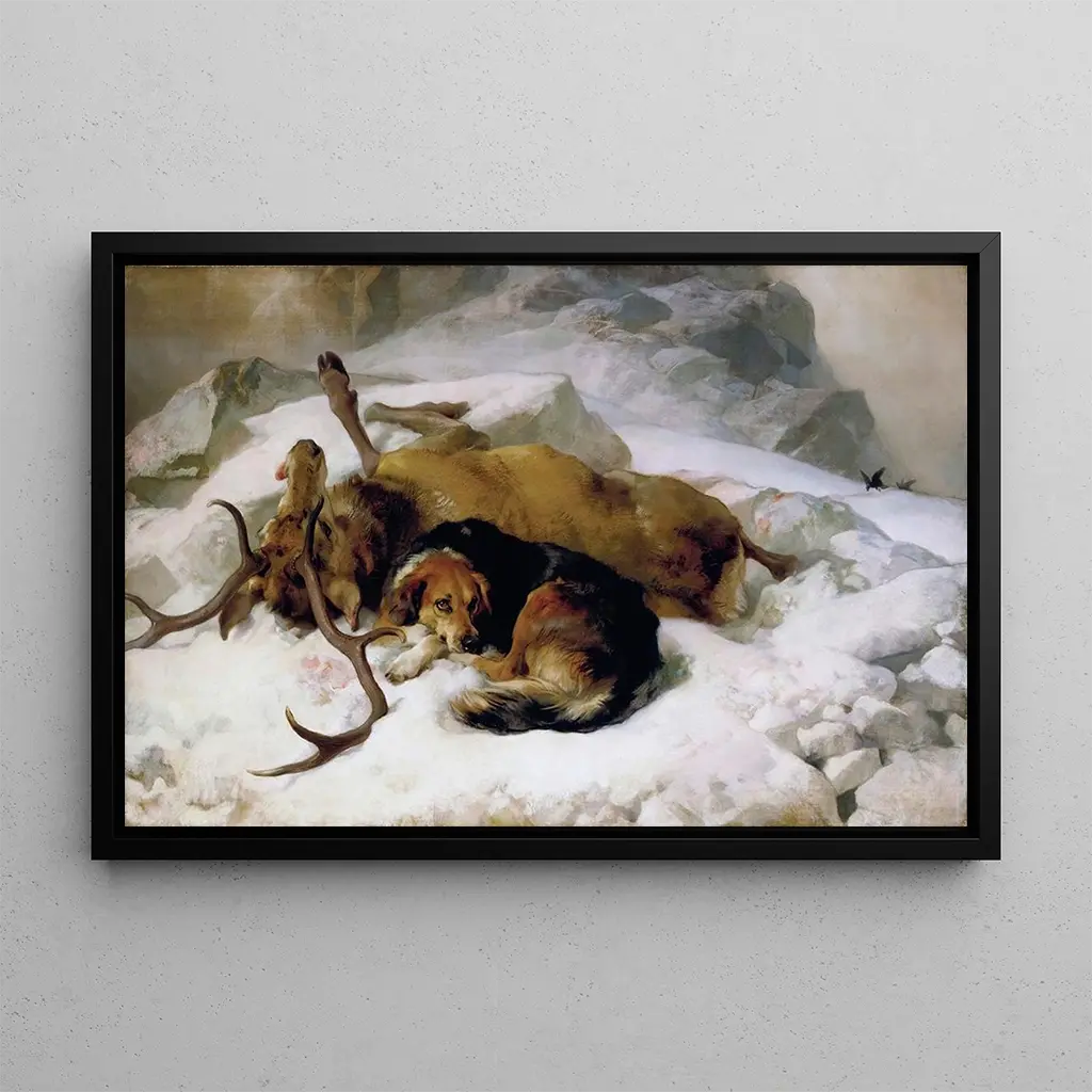 De kunstdruk van Chevy, gemaakt door Sir Edwin Henry Landseer, vangt de essentie van de nobele hond. In dit werk trekt de scherpe blik van de hond, tegelijk trots en beschermend, onmiddellijk de aandacht. De warme, aardse kleuren, gecombineerd met tinten bruin en zwart, creëren een sfeer die zowel intiem als wild is. De techniek van Landseer, die realisme en romantiek combineert, brengt elk detail tot leven, van de vacht tot de glans in de ogen. Dit doek roept een diepe verbinding op tussen mens en dier, en nodigt de kijker uit om de schoonheid en trouw van de beste vriend van de mens te bewonderen.