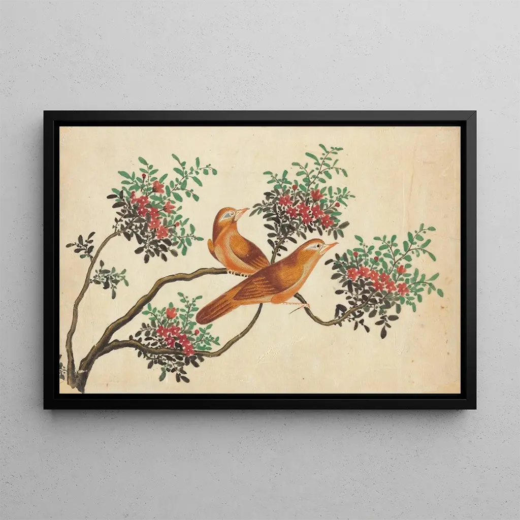 Oiseaux de Chine : een kleurrijk ballet van veren en gratie De kunstdruk Oiseaux de Chine roept een betoverende wereld op waar de natuur bloeit in een dans van levendige kleuren en delicate vormen. De vogels, afgebeeld met minutieuze precisie, lijken tot leven te komen op het doek, hun glanzende verenkleed verlicht het landschap. De nuances van blauw, groen en rood mengen harmonieus, waardoor een sfeer ontstaat die zowel sereen als levendig is. De gebruikte techniek, waarschijnlijk inkt op zijde, geeft het werk een lichtheid en vloeiendheid die de toeschouwer boeien. Elk detail, van weelderig blad tot gracieuze vogels, nodigt uit tot langdurige contemplatie en onthult de vergankelijke schoonheid van de natuur. Anoniem: een getuigenis van de traditionele Aziatische kunst De kunstenaar van de kunstdruk Oiseaux de Chine blijft anoniem, maar zijn werk getuigt van een rijke Aziatische artistieke traditie, die vooral bloeide tijdens de Ming- en Qing-dynastieën. Deze periodes zagen de opkomst van een onderscheidende stijl, waarin de natuur en dieren vaak worden gevierd vanwege hun symboliek en schoonheid. De invloeden van taoïstische filosofie en boeddhisme weerspiegelen zich in de manier waarop kunstenaars uit die tijd probeerden de harmonie tussen mens en natuur vast te leggen. Hoewel de identiteit van de kunstenaar onbekend blijft, blijft zijn werk inspireren en verwonderen, en benadrukt het het belang van de natuur in de Aziatische cultuur. Een decoratieve aankoop met vele voordelen De kunstdruk Oiseaux de Chine is een ideaal decoratief stuk voor diverse woonruimtes, of het nu een woonkamer, kantoor of slaapkamer is. De esthetische aantrekkingskracht en de kwaliteit van de kunstdruk maken het een perfecte keuze om een vleugje elegantie en sereniteit aan uw interieur toe te voegen. Het doek, trouw aan het origineel, stelt u in staat te genieten van de schoonheid van dit werk zonder afbreuk te doen aan de authenticiteit van uw decoratie. Door deze kunstdruk in uw ruimte te integreren, creëert u een rustgevende sfeer die bevorderlijk is voor contemplatie en ontsnapping, terwijl u het artistieke erfgoed van Azië viert.