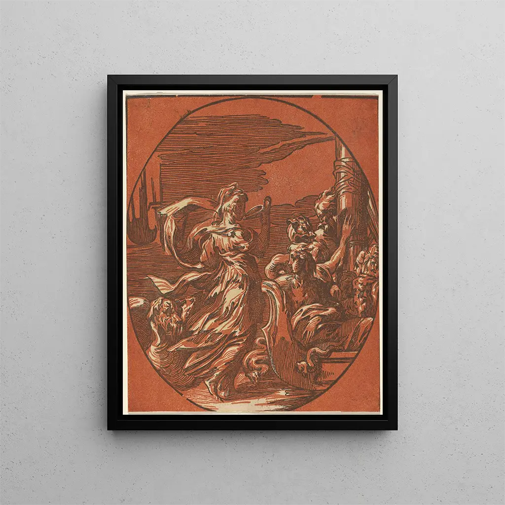 De kunstenaar achter deze kunstdruk is een hedendaagse creator die, terwijl hij zich laat inspireren door oude meesters, erin slaagt een dialoog te voeren tussen verleden en heden. Zijn techniek, beïnvloed door grote namen uit de kunstgeschiedenis, getuigt van een diepe kennis van schildertradities. Door klassieke werken te herinterpreteren, nodigt hij het publiek uit mythologische verhalen opnieuw te ontdekken door een moderne lens. Deze vernieuwende aanpak eert iconische figuren en geeft ze tegelijk een eigentijdse interpretatie. De invloed van Parmigianino, vooral in de behandeling van licht en schaduw, komt subtiel tot uiting en versterkt de narratieve dimensie van het stuk. De kunstenaar, door zijn talent en visie, positioneert zich als een ware verteller, die de verschillende tijden en stijlen verbindt.