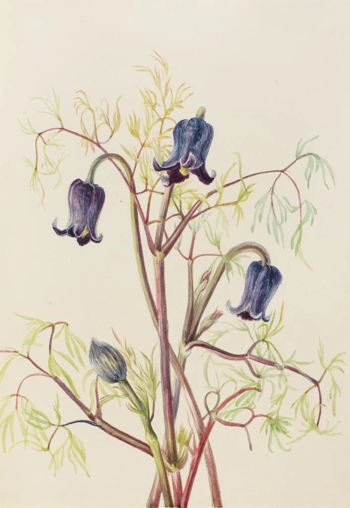 Mary Vaux Walcott, actief in het begin van de twintigste eeuw, wist haar liefde voor botanica te combineren met haar artistieke talent. Geïnspireerd door de naturalistische bewegingen van haar tijd, maakte ze talrijke illustraties van planten, waaronder de Clématite hirsute, die getuigen van haar inzet voor natuurbehoud. Naast haar artistieke werk was Walcott een fervent voorstander van nationale parken, en droeg ze bij aan het bewustmaken van het publiek over de schoonheid en kwetsbaarheid van het milieu. Haar werk blijft de huidige generaties inspireren en maakt haar tot een onmisbare figuur in de botanische kunst.