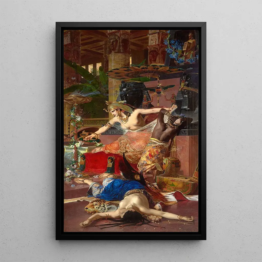 De kunstdruk van Cléopâtre is een meesterwerk dat de elegantie van uw interieur zal versterken. Of het nu in een woonkamer, kantoor of slaapkamer is, dit doek trekt de aandacht en wekt bewondering. De kwaliteit van de afdruk en de trouwheid van de kleuren eren het originele werk, terwijl het een vleugje verfijning aan uw decoratie toevoegt. Met zijn boeiende esthetiek wordt dit schilderij een echt middelpunt, dat uitnodigt tot reflectie en ontsnapping in de fascinerende wereld van het oude Egypte. Koop deze kunstdruk om uw kunstcollectie te verrijken en de tijdloze schoonheid van Cléopâtre te vieren.
