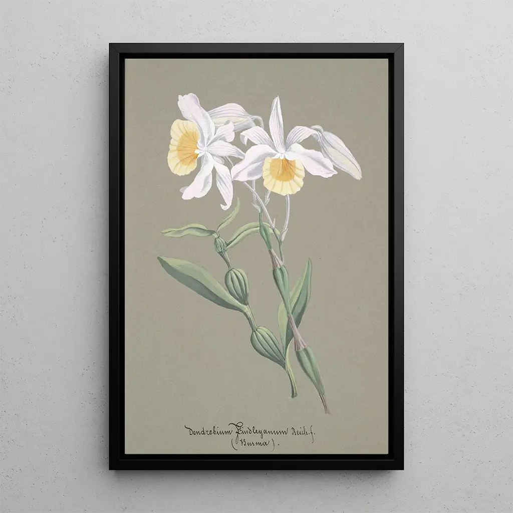 De anonieme kunstenaar van dit werk past binnen een artistieke traditie waarin bloemen, en vooral orchideeën, een prominente rol spelen. Door de eeuwen heen zijn deze bloemen symbolen van schoonheid en mysterie geweest, vaak afgebeeld in diverse stijlen variërend van barok tot romantiek. De invloed van Aziatische kunst, met name Chinese en Japanse schilderkunst, is duidelijk zichtbaar in dit werk, waar harmonie en esthetiek centraal staan. Dit schilderij, hoewel anoniem, getuigt van vakmanschap en artistieke gevoeligheid die de tijd overstijgen.