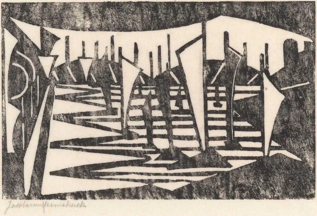 Compositie, boten in een haven - Jacoba van Heemskerck