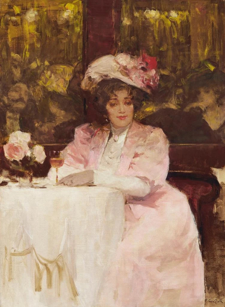 Kunstdruk | Dame dans un café - Victor Guerrier