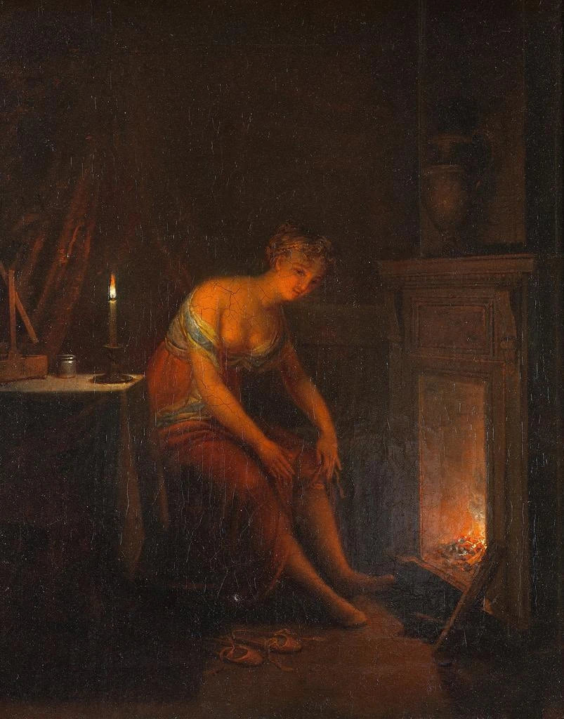 Kunstdruk Dame bindt haar jarretel - Alexander Laurus – Boeiende introductie