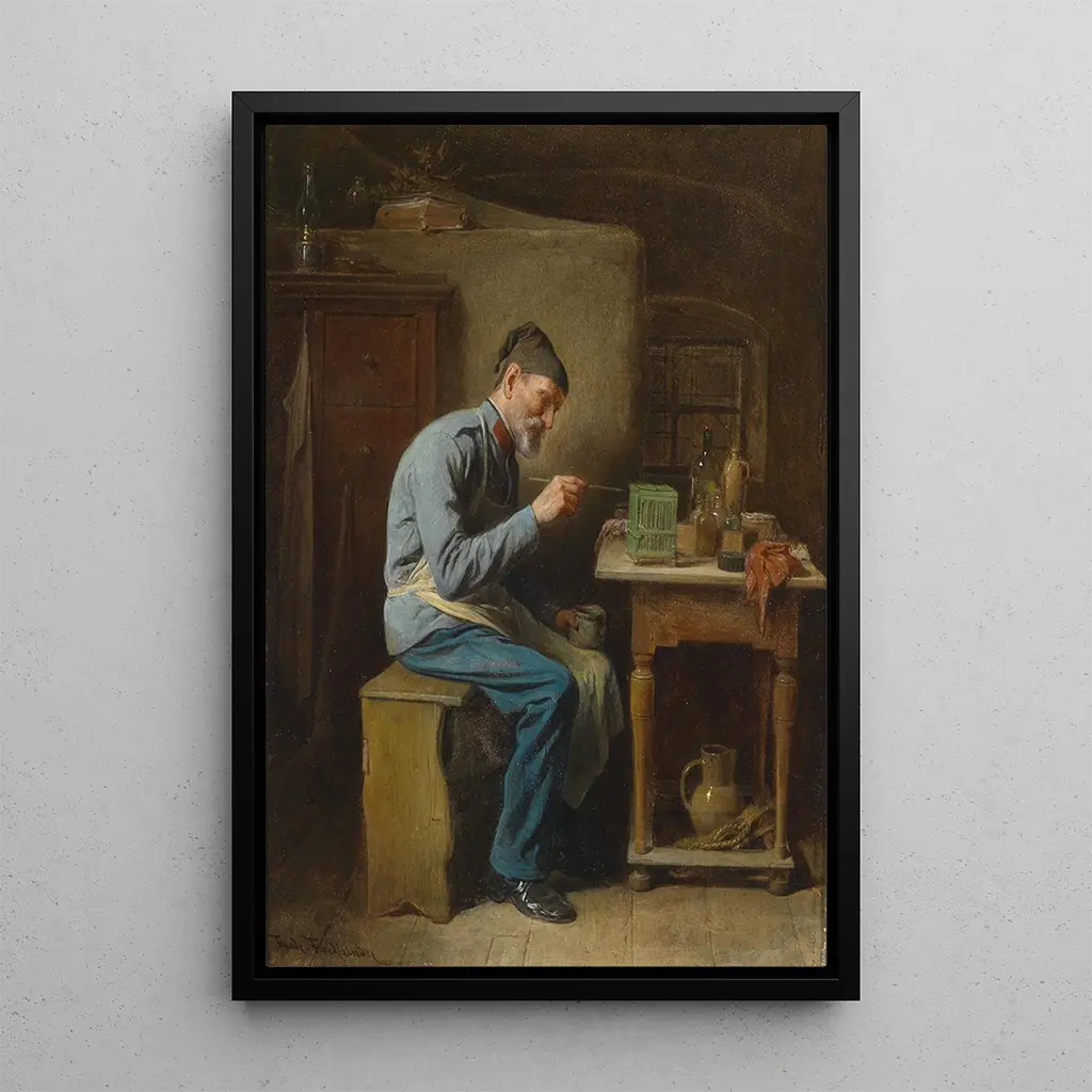 Friedrich Friedländer, Duitse schilder uit de 19e eeuw, wordt vaak erkend om zijn vermogen om alledaagse momenten met een unieke gevoeligheid vast te leggen. Geïnspireerd door de romantische beweging, wist hij realistische elementen in zijn kunstwerken te integreren, die de sociale zorgen van zijn tijd weerspiegelen. Hoewel minder bekend dan sommige van zijn tijdgenoten, getuigt zijn werk van een diepgaand begrip van kunst en de menselijke natuur. "De amateurkunstschilder" illustreert perfect zijn stijl, met een intieme aanpak en een minutieuze observatie van details, wat het een belangrijk stuk maakt van zijn artistieke nalatenschap.