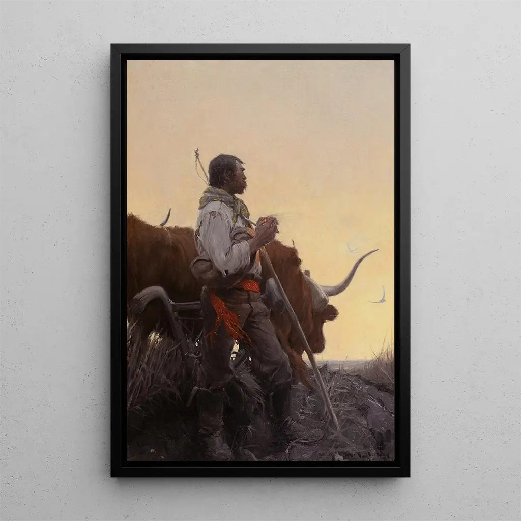 Harvey T. Dunn, actif au début du XXe siècle, est reconnu pour son approche réaliste et ses représentations poignantes de la vie américaine. Influencé par le mouvement du réalisme, il a su capturer des scènes de la vie quotidienne avec une sensibilité unique. Dunn a également été un illustrateur de renom, ce qui a enrichi son style pictural. Ses œuvres, souvent inspirées par la nature et le labeur humain, témoignent d'une époque où l'agriculture était au cœur de la société. "Le laboureur" s'inscrit dans cette tradition, célébrant le lien entre l'homme et la terre.