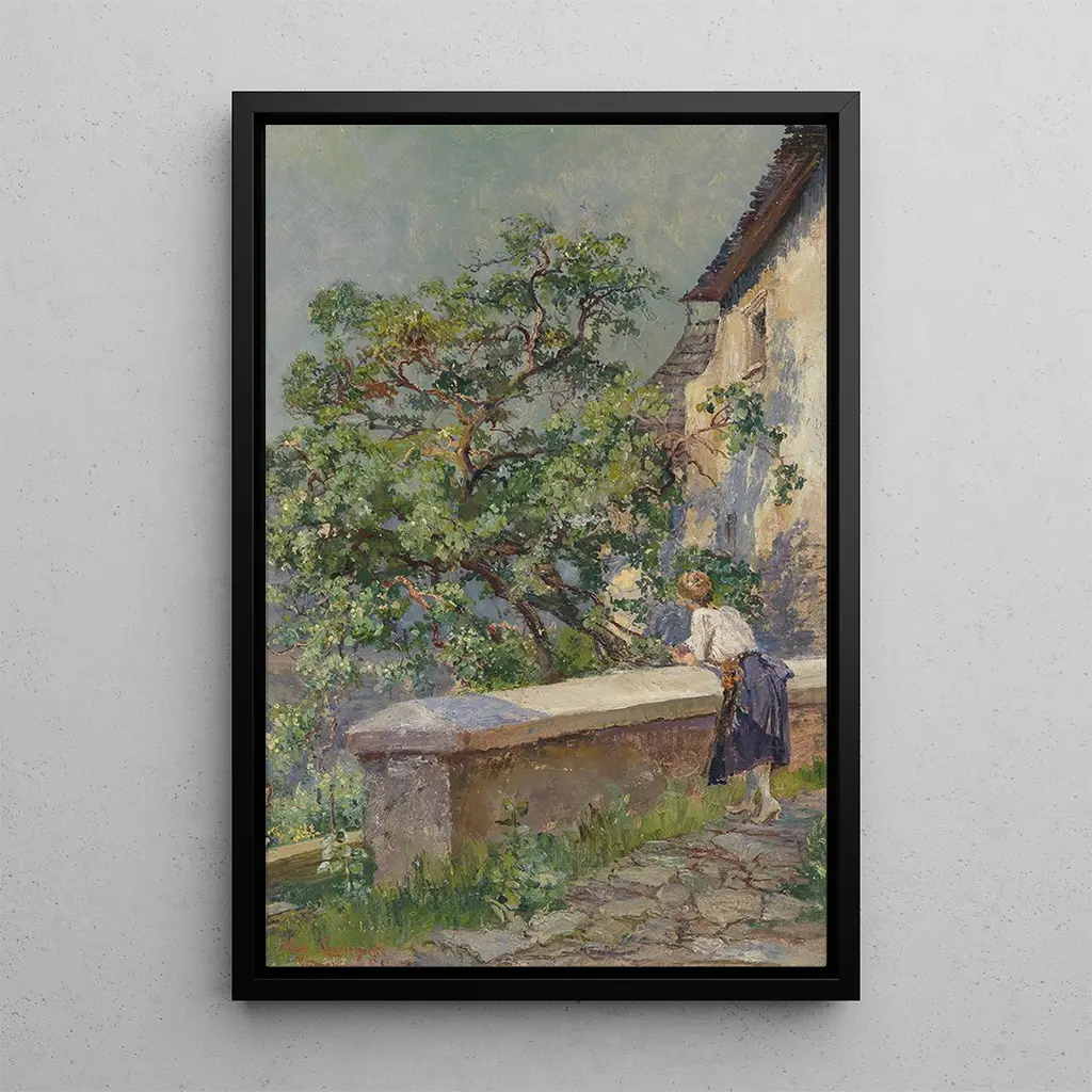 Van de Wachau : een picturale reis door de wijngaarden "Van de Wachau" is een kunstdruk die de schoonheid van de Oostenrijkse wijngaardlandschappen oproept, met opmerkelijke fijnheid geschilderd door Hugo Charlemont. De groene heuvels, bezaaid met weelderige wijnstokken, strekken zich eindeloos uit, terwijl de Donau sierlijk kronkelt beneden. Charlemont gebruikt een palet van zachte kleuren, met heldere groenen en rustgevende blauwen, waardoor een sfeer van sereniteit en harmonie ontstaat. Het licht speelt een essentiële rol in deze compositie, verlicht de bladeren en voegt een bijna magische dimensie toe aan dit kunstwerk. Elk detail, van de wijnstokken tot de wolken, getuigt van de liefde van de kunstenaar voor de natuur. Hugo Charlemont : een kunstenaar met een hart voor impressionisme Hugo Charlemont, actief aan het einde van de 19e eeuw, is een schilder wiens werk binnen de impressionistische beweging past. Zijn vermogen om het licht en de kleuren van de natuur vast te leggen, stelde hem in staat zich te onderscheiden in het artistieke landschap van zijn tijd. Geïnspireerd door zijn reizen door Europa, wist Charlemont elementen van verschillende stijlen te integreren terwijl hij trouw bleef aan zijn eigen blik. "Van de Wachau" is een perfect voorbeeld van zijn talent, dat zijn interesse voor landelijke landschappen en scènes uit het dagelijks leven illustreert. Zijn werk wordt nog steeds gevierd om zijn schoonheid en authenticiteit. Een decoratieve aanwinst met vele voordelen De kunstdruk van "Van de Wachau" is een ideale keuze voor wie een vleugje natuur in huis wil brengen. Of het nu in een woonkamer, eetkamer of kantoor is, dit kunstwerk roept de rust van wijngaardlandschappen op en nodigt uit tot ontspanning. De kwaliteit van de kunstdruk garandeert een perfecte fideliteit aan de nuances en details van het originele werk, terwijl het een onmiskenbare esthetische aantrekkingskracht biedt. Door deze doek in uw decoratie te integreren, creëert u een warme en uitnodigende ruimte, waar de schoonheid van natuurlijke landschappen bij u thuis wordt uitgenodigd.