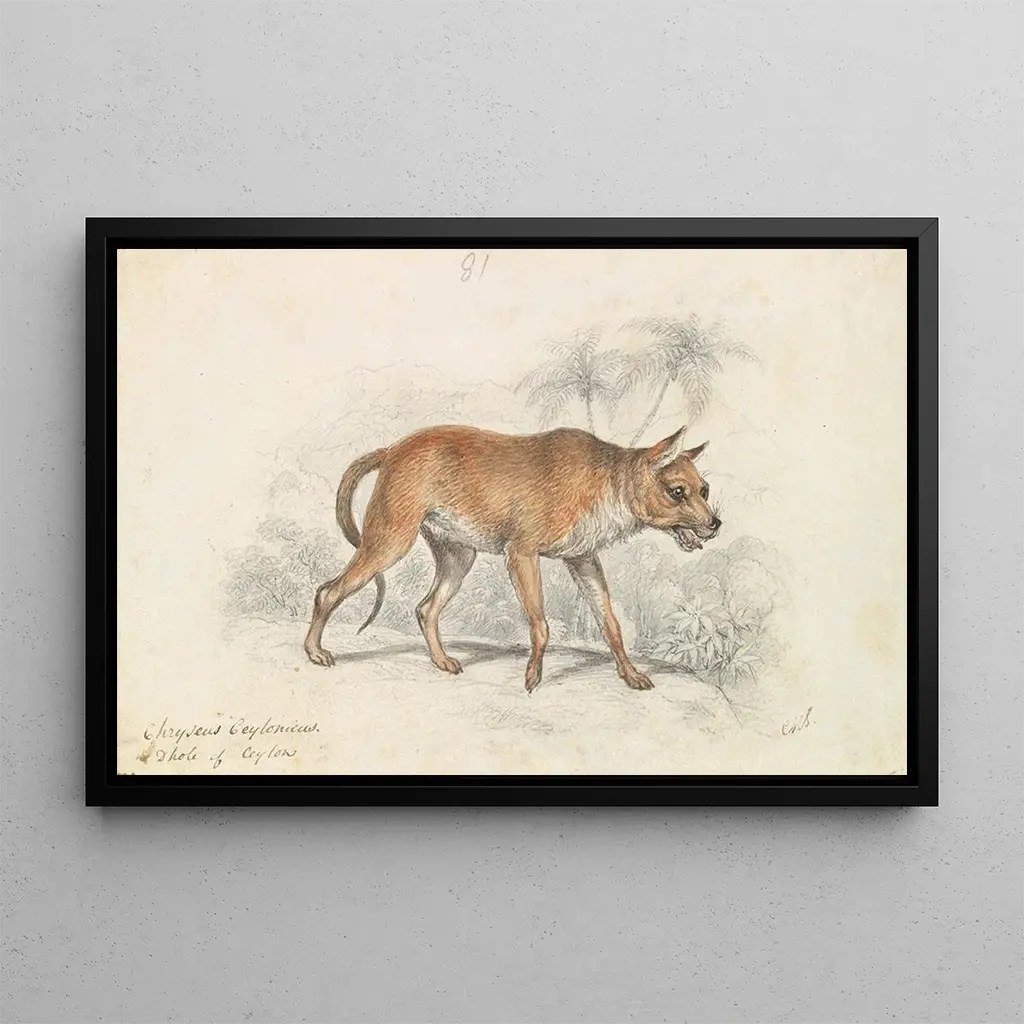 Le dhole de Ceylan : een blik op de majestueuze fauna "Le dhole de Ceylan" is een boeiend kunstwerk dat de wilde schoonheid van dit iconische dier benadrukt. Het schilderij beeldt de dhole, ofwel de Aziatische wilde hond, af in zijn natuurlijke habitat, omringd door weelderige vegetatie. De warme, aardse kleuren, gecombineerd met lichte accenten, creëren een levendige en dynamische sfeer. De techniek van de kunstenaar, die vloeiende en expressieve penseelstreken gebruikt, brengt de vacht van de dhole tot leven en geeft het werk bijna een tastbare kwaliteit. Deze voorstelling nodigt uit tot reflectie over fauna en flora, terwijl het de diversiteit van de natuur viert. Charles Hamilton Smith : een pionier in de illustratie van de dierenwereld Charles Hamilton Smith, actief in het begin van de 19e eeuw, wordt erkend om zijn bijdragen aan de illustratie van de dierenwereld en de documentatie van fauna. Zijn werken, vaak geïnspireerd door zijn reizen, weerspiegelen een passie voor de natuur en oog voor detail. Smith wist kunst en wetenschap te combineren door nauwkeurige illustraties te maken die dienden voor educatieve en esthetische doeleinden. Zijn werk heeft een significante invloed gehad op de manier waarop fauna wordt waargenomen en afgebeeld, en hij wordt beschouwd als een van de voorlopers van de moderne dierenillustratie. Een decoratief kunstwerk met vele voordelen De reproductie van de "Le dhole de Ceylan" is een ideale decoratieve keuze voor liefhebbers van natuur en fauna. Of het nu in een kantoor, woonkamer of slaapkamer is, dit kunstwerk brengt een vleugje exotisme en karakter in uw ruimte. De afdrukkwaliteit garandeert een opmerkelijke fideliteit aan de details van het origineel, en eert de schoonheid van dit majestueuze dier. Door dit schilderij in uw inrichting te integreren, creëert u een inspirerende en rustgevende omgeving, terwijl u de rijkdom van onze biodiversiteit viert. Dit kunstwerk is veel meer dan een eenvoudig kunstwerk; het is een venster naar de wilde wereld.