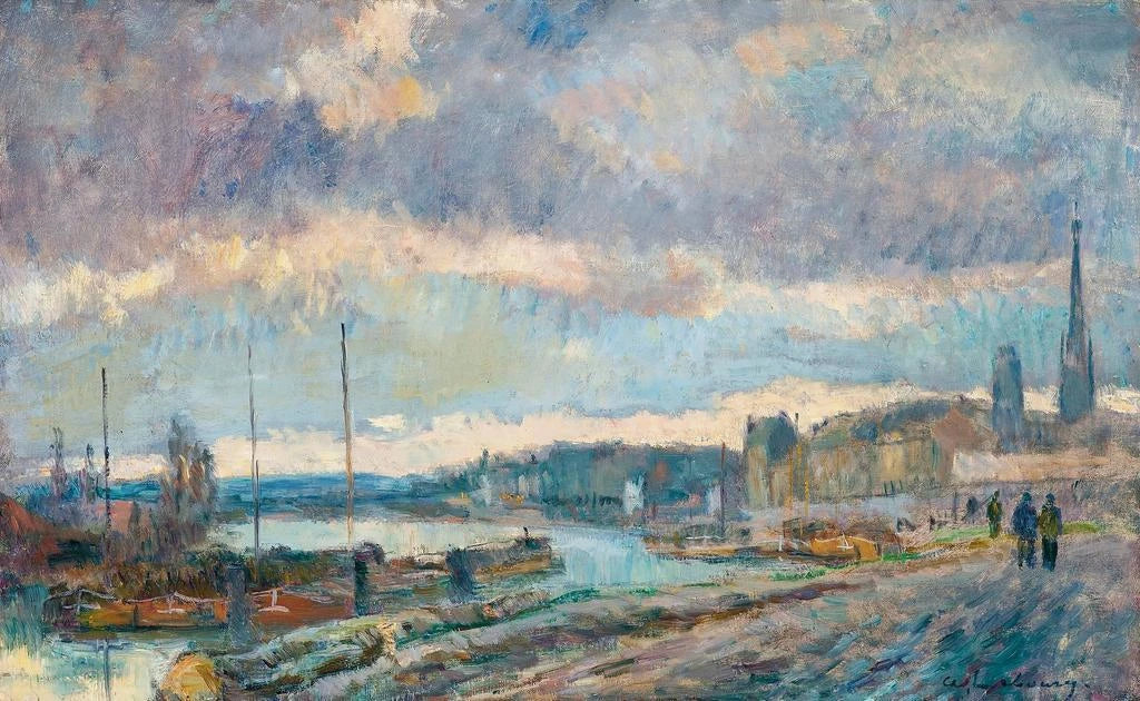 Albert Lebourg, né en 1849, est un artiste majeur du mouvement impressionniste, dont l'œuvre s'inscrit dans la tradition des paysages français. Influencé par des contemporains tels que Monet et Pissarro, Lebourg développe un style unique, caractérisé par des compositions lumineuses et une attention particulière aux effets de la lumière sur les paysages. Actif principalement à la fin du XIXe siècle et au début du XXe siècle, il a su capturer la beauté des scènes quotidiennes, tout en contribuant à l'évolution de l'art moderne. Le Port de Rouen est un exemple parfait de son habileté à immortaliser des moments éphémères.