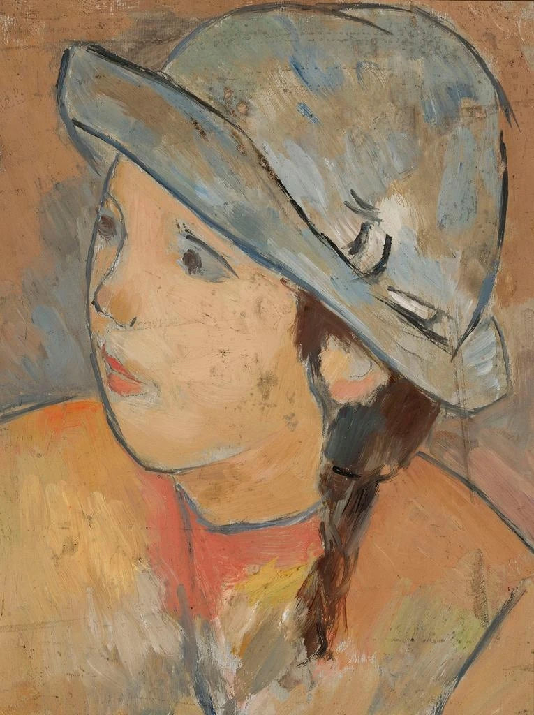Het hoofd van een meisje met een blauwe hoed - Tadeusz Makowski