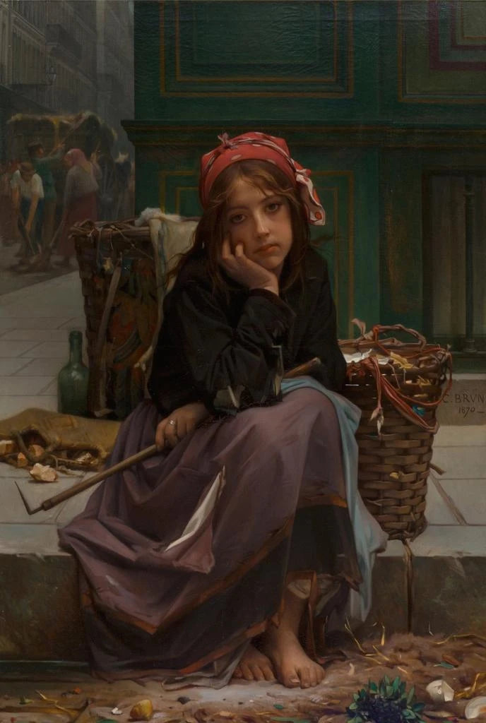 Guillaume Charles Brun, een iconische figuur van de 19e eeuw, behoort tot de lijn van realistische kunstenaars die proberen het leven weer te geven zoals het is. Geïnspireerd door de sociale en economische transformaties van zijn tijd, richt hij zich vooral op de arbeidersklasse en hun strijd. Zijn werken, waaronder "De jonge verkoopster van chiffons", weerspiegelen een diepe menselijkheid en een wil om een stem te geven aan degenen die vaak onzichtbaar blijven. Door zijn kunst draagt Brun bij aan een maatschappelijk bewustzijn en is hij een belangrijke acteur van zijn tijd.