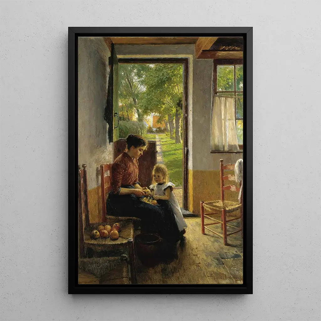 Le petit assistant de maman : un regard tendre sur l’enfance Dans "Le petit assistant de maman", Henrik Nordenberg capture la douceur de l’enfance à travers une composition délicate. Le tableau dépeint un jeune garçon, concentré sur ses tâches, entouré d’une palette de couleurs chaudes et apaisantes. Les nuances de brun et de jaune créent une atmosphère chaleureuse, tandis que la lumière douce qui éclaire le visage du petit protagoniste évoque une sensation de sérénité. La technique de Nordenberg, mêlant réalisme et impressionnisme, permet de ressentir la tendresse du moment, comme si l’on pouvait entendre les murmures de l’enfance et les rires lointains. Henrik Nordenberg : un maître du réalisme scandinave Henrik Nordenberg, actif à la fin du XIXe siècle, est un artiste norvégien dont le travail s'inscrit dans le mouvement du réalisme. Influencé par les grands maîtres de son temps, il cherche à représenter la vie quotidienne avec une sensibilité particulière. Nordenberg se distingue par sa capacité à capturer des moments simples mais chargés d’émotion, comme en témoigne cette œuvre. Son approche artistique reflète les préoccupations sociales de son époque, où l’enfance et la famille occupent une place centrale dans la société. En mettant en lumière ces thèmes, il contribue à l’évolution de l’art scandinave vers une représentation plus intime et humaine. Une acquisition décorative aux multiples atouts La kunstdruk de "Le petit assistant de maman" est une pièce décorative qui saura enrichir votre intérieur. Que ce soit dans un salon, un bureau ou une chambre, ce tableau apporte une touche de chaleur et de nostalgie. Sa qualité de kunstdruk garantit une fidélité aux détails et aux couleurs de l'œuvre originale, permettant ainsi de profiter de toute la beauté de cette scène touchante. Avec son attrait esthétique, cette toile devient un véritable point focal, suscitant des conversations et des émotions chez vos invités. Offrez-vous une part de l’enfance avec cette œuvre intemporelle.