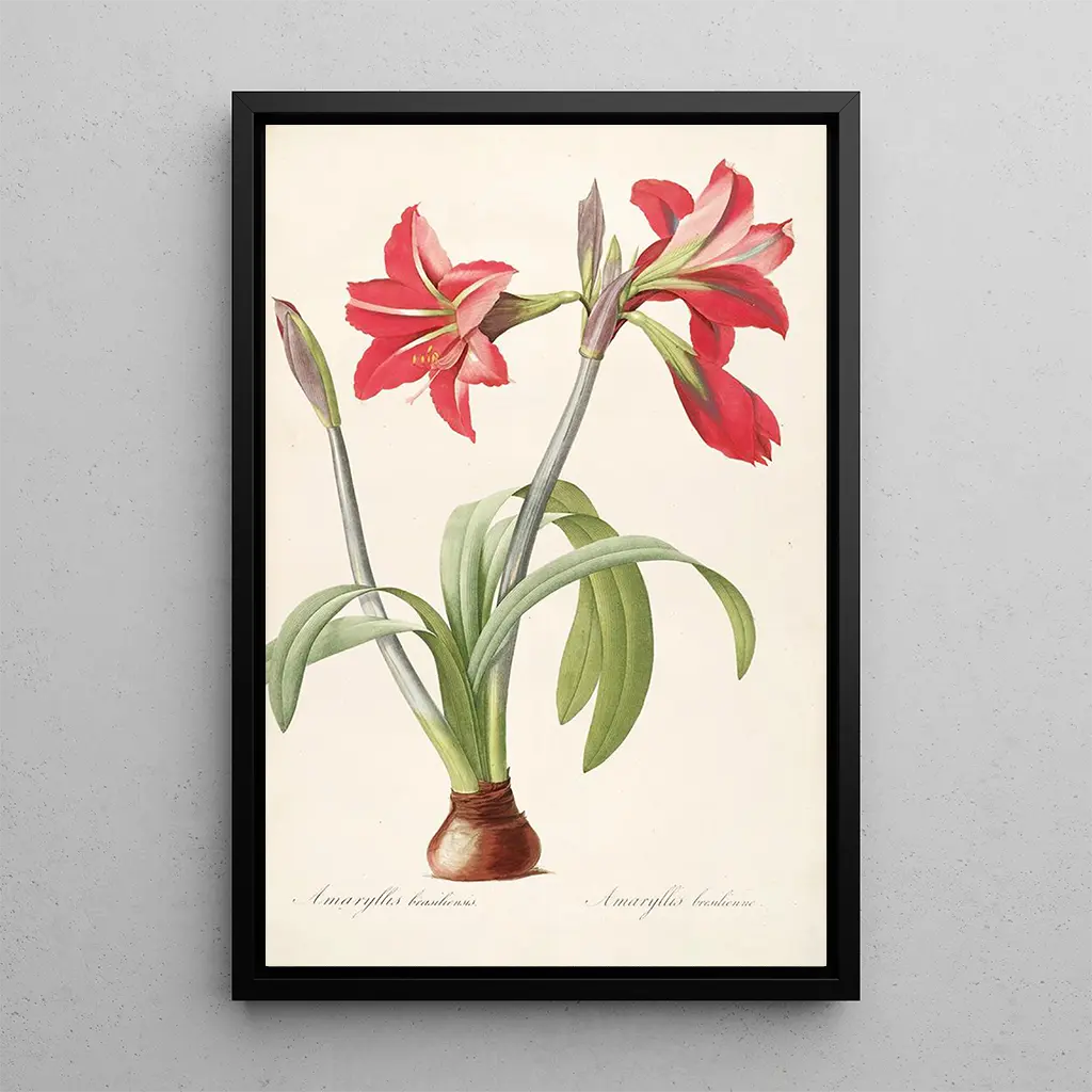 Les Liliacées Pl48 : une célébration de la beauté florale De kunstdruk Les Liliacées Pl48 van Pierre Joseph Redouté dompelt ons in een delicate wereld waar elke bloemblad lijkt een verhaal te vertellen. De nuances van groen en violet mengen harmonieus, waardoor een rustgevende en verfijnde sfeer ontstaat. De aquareltechniek, beheerst door Redouté, stelt je in staat om het licht en de transparantie van de bloemen met opmerkelijke precisie vast te leggen. Dit schilderij roept de sereniteit van bloeiende tuinen op, uitnodigend tot contemplatie en verwondering over de natuur. Pierre Joseph Redouté : de meester van de bloemen in de 18e eeuw Pierre Joseph Redouté, bijgenaamd de "Raphaël der bloemen", is een Belgische kunstenaar uit de 18e eeuw wiens werk diepgaande invloed heeft gehad op de botanische illustratie. Opgeleid in schilderkunst en graveerkunst, wist hij wetenschap en esthetiek te combineren, en produceerde hij werken die zowel wetenschappelijke documenten als kunstwerken zijn. Zijn illustraties werden breed verspreid dankzij prestigieuze publicaties, waardoor hij een onmiskenbare referentie werd in de botaniek. Redouté was ook de officiële schilder van Marie-Antoinette, wat zijn belang in de artistieke wereld van zijn tijd onderstreept. Een decoratieve aanwinst met vele voordelen De kunstdruk van het schilderij Les Liliacées Pl48 is een ideale decoratieve keuze om je interieur te verfraaien, of het nu in een woonkamer, kantoor of slaapkamer is. De afdrukkwaliteit garandeert een trouwheid aan de kleuren en details van het originele werk, en brengt een vleugje verfijning in je inrichting. De esthetische aantrekkingskracht van dit doek maakt het een centraal element dat de aandacht trekt en gesprekken uitlokt. Door dit werk in je ruimte te integreren, geef je je omgeving een vleugje poëzie en natuur, terwijl je het ongeëvenaarde talent van Pierre Joseph Redouté viert.