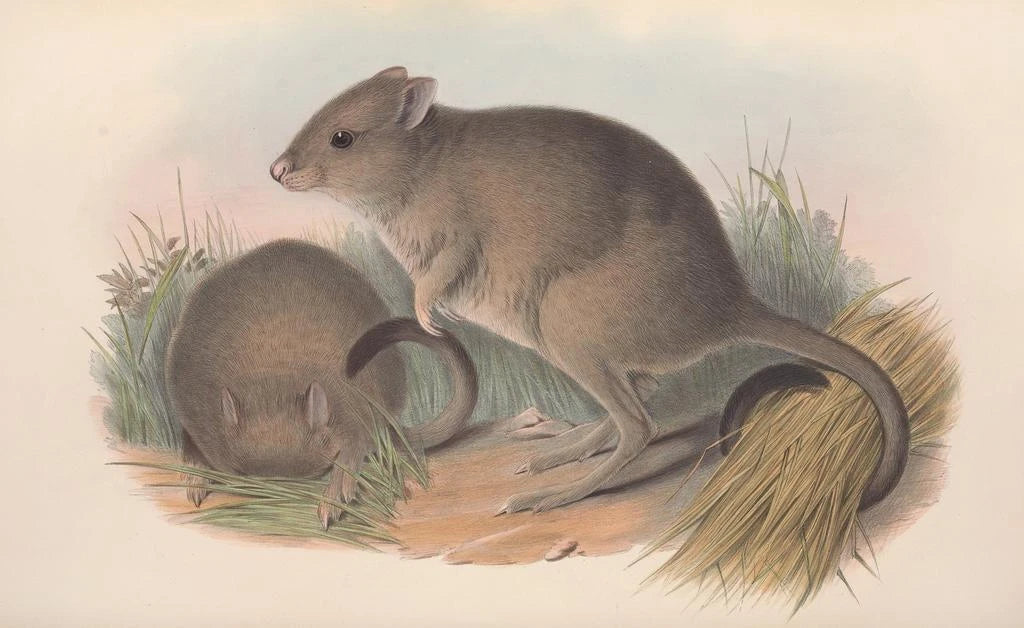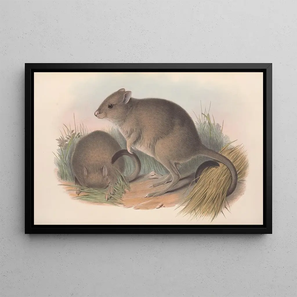 In deze betoverende kunstdruk, Les Mammifères d'Australie Pl097, dompelt John Gould ons onder in het hart van de Australische biodiversiteit. De levendige kleuren en de minutieuze details van de afgebeelde dieren roepen een sfeer op die zowel wild als fascinerend is. Elk schepsel wordt weergegeven met een precisie die getuigt van de aandachtige observatie van de kunstenaar. De harmonieuze compositie, waarin de soorten naast elkaar staan in een natuurlijke omgeving, nodigt uit tot het bewonderen van de wonderen van de natuur. Gould slaagt erin de essentie van deze zoogdieren vast te leggen, en brengt hulde aan hun schoonheid en uniciteit.