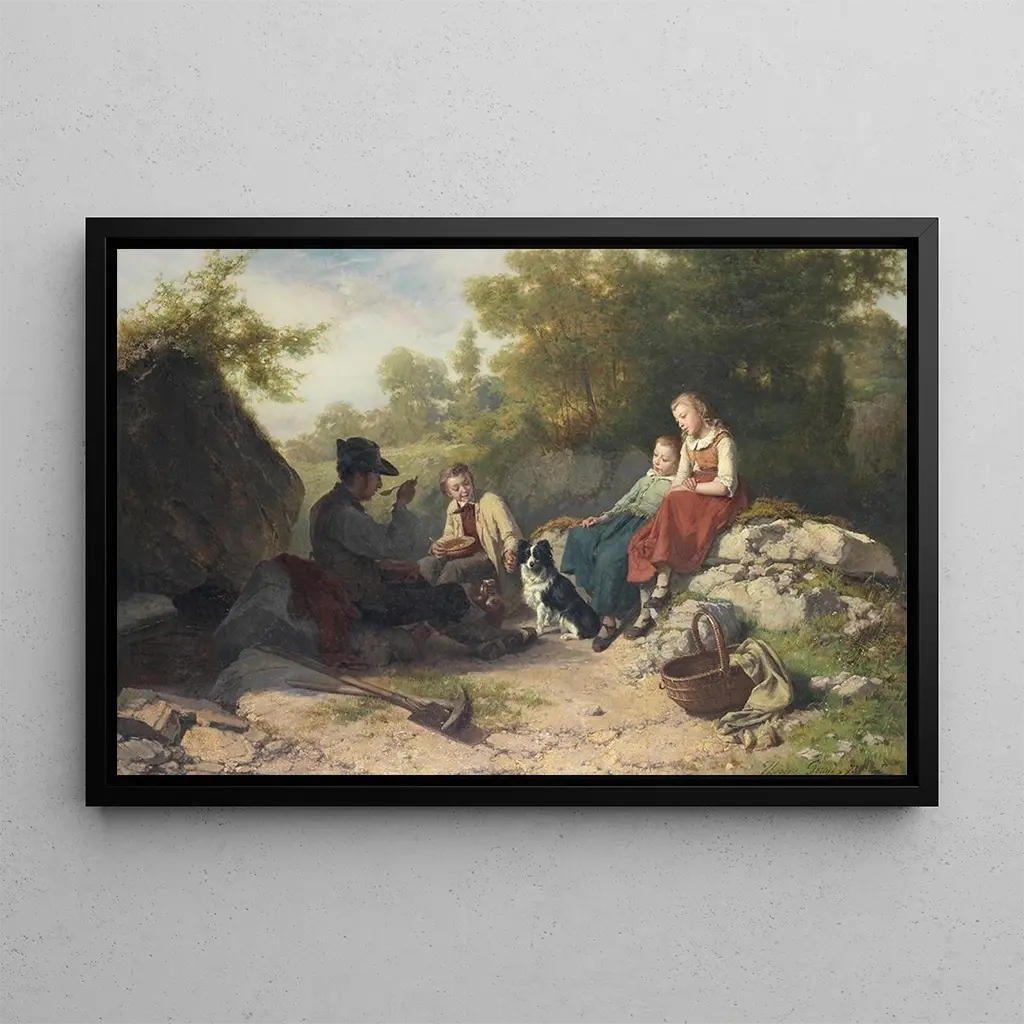 De middagpauze: een moment van sereniteit vastgelegd in de tijd In De middagpauze vangt Théodore Gérard een moment van rust in het hart van het dagelijks leven. Dit doek beeldt arbeiders af die een welverdiende pauze nemen, zittend rond een tafel, genietend van een eenvoudige maaltijd. De warme, aardse kleuren, gecombineerd met zacht licht, creëren een uitnodigende en rustgevende sfeer. De compositie is zorgvuldig uitgebalanceerd, met de nadruk op de uitdrukkingen van de personages, die lijken te genieten van de gezelligheid van het moment. Gérards techniek, gekenmerkt door minutieuze details en bijzondere aandacht voor het licht, brengt deze intieme scène tot leven en nodigt de kijker uit om dit pauzemoment te delen. Théodore Gérard: een getuige van het landelijke leven van de 19e eeuw Théodore Gérard, geboren in 1829 in Brussel, is een Belgische schilder wiens werk zich richt op het landelijke leven en genrestukken. Geïnspireerd door het realisme, streeft hij ernaar de eenvoud en authenticiteit van het dagelijks leven te weergeven. Gérard ontwikkelt zich vooral in de 19e eeuw, een periode gekenmerkt door sociale en economische veranderingen in Europa. Zijn werk getuigt van een diepe empathie voor de arbeidersklasse, en hij slaagt erin momenten van eenvoudige gelukzaligheid te vereeuwigen. Dankzij zijn talent draagt hij bij aan de evolutie van de genrestijl, door vaak over het hoofd geziene scènes door zijn tijdgenoten te belichten. Een decoratief kunstwerk met vele voordelen Kiezen voor een kunstdruk van De middagpauze betekent je leefruimte verrijken met een werk dat doordrenkt is van warmte en gezelligheid. Dit schilderij past perfect in een woonkamer, eetkamer of zelfs een kantoor, en brengt een vleugje menselijkheid en sereniteit in je inrichting. De kwaliteit van de kunstdruk garandeert een nauwkeurige weergave van de kleuren en details van het originele werk, zodat je volop kunt genieten van de rustgevende sfeer die Gérard heeft gecreëerd. Met zijn esthetische aantrekkingskracht wordt deze doek een centraal element in je decoratie, dat gesprekken en emoties bij je gasten oproept.