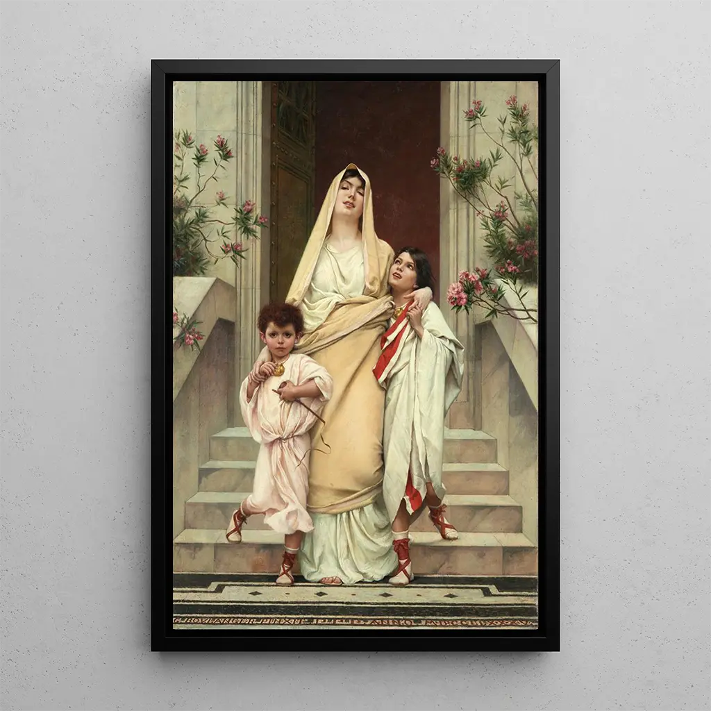 "De moeder van de Gracchen" van Gustave Boulanger is een ontroerend kunstdruk die de moederfiguur in een rijke historische context belicht. De compositie, gericht op een vrouw met een vastberaden blik, roept kracht en veerkracht op. De aardetinten en de minutieuze details van de historische kleding dompelen de kijker onder in het oude Rome, terwijl de uitdrukking van de moeder een voelbare emotie overbrengt. Dit kunstwerk nodigt uit tot reflectie over de rol van vrouwen in de geschiedenis, terwijl het hun stille maar krachtige invloed viert.
