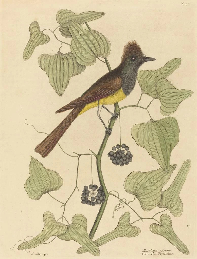 De gekapte muscicapa Muscicapa cristata - Mark Catesby
