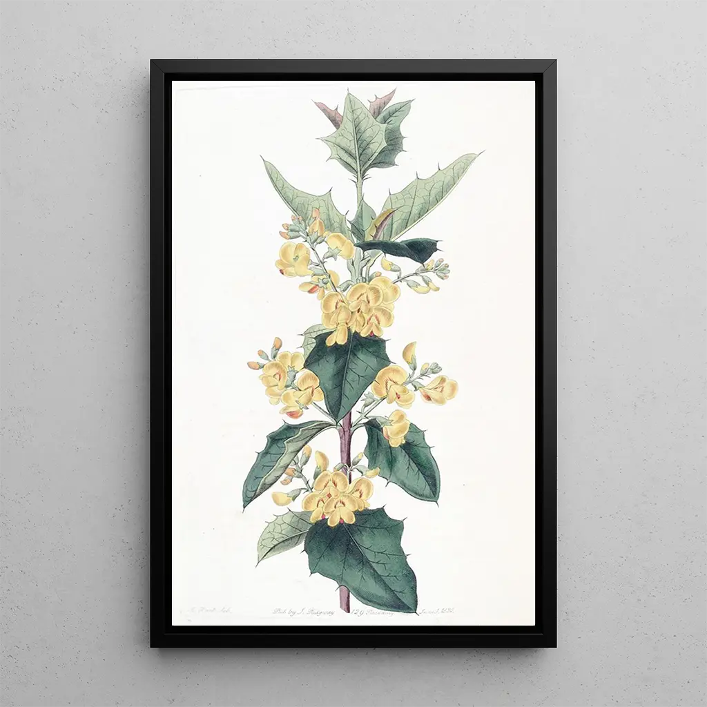 De podolobium met drie lobben, geïllustreerd door Sydenham Edwards, onderscheidt zich door zijn unieke vormen en levendige kleuren. Deze kunstdruk onthult een fascinerende plantwereld, waar nuances van geel en groen harmoniëren om een boeiende compositie te creëren. De gebruikte techniek accentueert de details van de bladeren en bloemen, waardoor een bijna tastbare visie ontstaat van deze plant. Elk element wordt zorgvuldig weergegeven, waardoor de kijker wordt uitgenodigd de rijkdom van de biodiversiteit te verkennen. Deze kunstdruk van de podolobium met drie lobben is een viering van de natuur, perfect voor wie de botanische schoonheid waardeert.