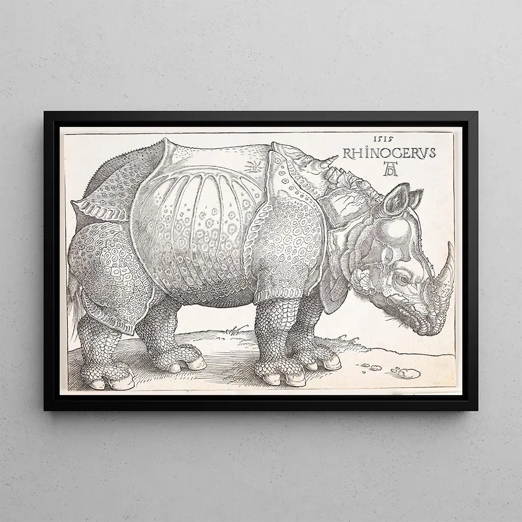 Le Rhinocéros : een mythisch schepsel met een scherpe blik De Rhinocéros van Albrecht Dürer is een iconisch kunstdruk die de aandacht trekt door zijn verbluffende realisme en aandacht voor detail. Gemaakt in 1515, stelt deze houtsnede een rhinocéros voor, een exotisch en mysterieus dier voor die tijd, met een rijke textuur en delicate schaduwen die het geheel tot leven brengen. De precieze lijnen en het contrast tussen licht en donker creëren een majestueuze en intrigerende sfeer, die de kijker uitnodigt om na te denken over de aard van dit fascinerende beest. De compositie, hoewel statisch, geeft een indruk van kracht en macht, terwijl het ook de nieuwsgierigheid van de kunstenaar voor de natuurlijke wereld weerspiegelt. Albrecht Dürer : meester van de Duitse renaissance Albrecht Dürer is een van de meest invloedrijke kunstenaars van de Duitse renaissance, bekend om zijn technische innovaties en zijn humanistische benadering van kunst. Geboren in 1471 in Neurenberg, werd hij opgeleid in het atelier van zijn vader, een goudsmid, voordat hij door Europa reisde om inspiratie op te doen bij Italiaanse meesters. Dürer wist elementen van de Italiaanse schilderkunst te integreren in zijn eigen stijl, terwijl hij een Noordse gevoeligheid behield. Zijn werk, dat gravures, schilderijen en tekeningen omvat, getuigt van zijn interesse in de natuurlijke wetenschappen en anatomie, waardoor hij een pionier is in de studie van het levende lichaam. De kunstdruk van de Rhinocéros, hoewel het een representatie is van een exotisch dier, illustreert perfect zijn talent om de realiteit met ongeëvenaarde precisie vast te leggen. Een decoratief stuk met vele voordelen De kunstdruk van de Rhinocéros is een decoratief stuk dat harmonieus in diverse ruimtes kan worden geïntegreerd, of het nu een woonkamer, kantoor of slaapkamer is. De kwaliteit van de afdruk en de trouw aan het originele werk maken het een ideale keuze voor kunstliefhebbers en verzamelaars. Door dit schilderij aan uw inrichting toe te voegen, brengt u een vleugje elegantie en kennis in uw interieur. De esthetische aantrekkingskracht van deze doek ligt niet alleen in het boeiende onderwerp, maar ook in de manier waarop het de geest van een fascinerend tijdperk oproept, terwijl het de nieuwsgierigheid en bewondering van uw gasten wekt.