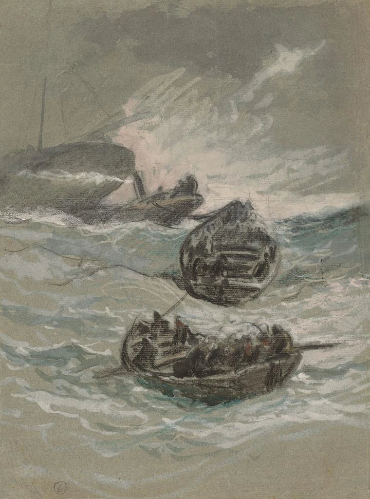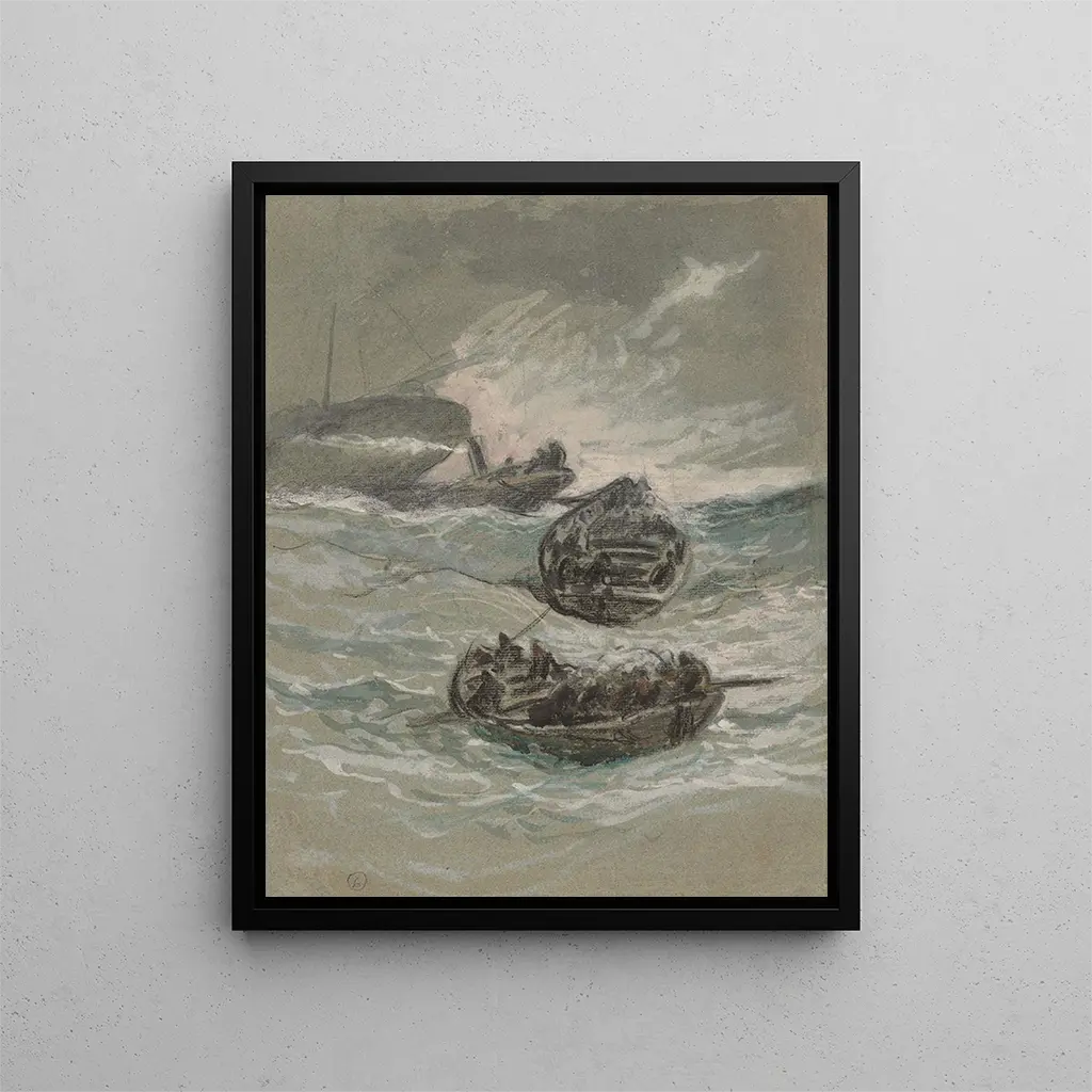 Reproductie De scheepsramp - Elihu Vedder – Boeiende introductie In het rijke en complexe universum van kunst slagen sommige werken erin om het collectieve verbeeldingsvermogen met een zeldzame intensiteit vast te leggen. "De scheepsramp" van Elihu Vedder is een van die creaties die de eenvoudige context van schilderkunst overstijgt en een ware reflectie wordt op het menselijke lot. Dit werk, doordrenkt met mysterie en poëzie, dompelt ons onder in een wereld waar de zee, tegelijk voedend en destructief, symbool staat voor innerlijke strijd en levensproeven. Vedder slaagt er met zijn talent in om diepe emoties op te roepen via visuele elementen die aanspreken en tot contemplatie uitnodigen. Stijl en uniekheid van het werk De stijl van Elihu Vedder wordt gekenmerkt door een unieke gevoeligheid die symbolisme combineert met een bijna mystieke benadering. In "De scheepsramp" roepen de donkere kleuren en de getormenteerde vormen een sfeer van wanhoop op, terwijl er toch een tragische schoonheid zichtbaar blijft. De compositie is zorgvuldig georkestreerd, elk element antwoordt op een stille dialoog. De menselijke figuren, vaak in de greep van de storm, belichamen archetypes van strijd en veerkracht. Dit werk onderscheidt zich door het gedurfde gebruik van licht en schaduw, wat een voelbare spanning creëert die de blik trekt en de verbeelding stimuleert. Vedder slaagt erin om de ramp om te zetten in een esthetische ervaring, waarbij elke penseelstreek geladen lijkt met betekenis en diepte. De kunstenaar en zijn invloed Elihu Vedder, Amerikaanse kunstenaar uit de 19e eeuw, wordt vaak beschouwd als een voorloper van het symbolisme. Zijn carrière, gekenmerkt door reizen door Europa, stelde hem in staat om zich onder te dompelen in de artistieke stromingen van zijn tijd en tegelijkertijd een eigen stem te ontwikkelen. Geïnspireerd door literatuur en filosofie, integreert Vedder elementen van mythologie en spiritualiteit in zijn werken, wat hem een universele dimensie geeft. "De scheepsramp" is emblematisch voor deze zoektocht naar betekenis, waarbij kunst een middel wordt om de thema's van sterfelijkheid en existentiële angst te verkennen. Zijn vermogen om realisme te combineren met een poëtische visie heeft een onuitwisbare indruk achtergelaten op zijn tijdgenoten en blijft kunstenaars inspireren.