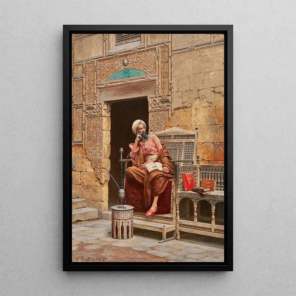 Le Scribe : een eerbetoon aan de oude wijsheid In dit boeiende kunstdruk brengt Ludwig Deutsch ons naar het hart van een oosterse scène waar een schrijver, geconcentreerd en nadenkend, zich bezighoudt met het opstellen van waardevolle documenten. De compositie is rijk aan details, met warme en aardse kleuren die de warmte van de woestijn en de diepte van de Arabische cultuur oproepen. Het zachte licht dat het gezicht van de schrijver verlicht, creëert een intieme, bijna heilige sfeer, die de toeschouwer uitnodigt om onder te dompelen in de wereld van kennis en traditie. Deutschs techniek, die realisme en romantiek combineert, laat je de betekenis voelen van dit moment dat in de tijd is vastgelegd. Ludwig Deutsch : een meester van de oosterse realisme Ludwig Deutsch, Oostenrijkse schilder uit de 19e eeuw, staat bekend om zijn oosterse kunstdrukken die de essentie van het Oosten vastleggen door een prisma van fascinatie en exotisme. Geïnspireerd door reizen en de verhalen van zijn tijdgenoten, wist Deutsch schilderijen te creëren die historische precisie en verbeelding combineren. Zijn creatieve periode, gekenmerkt door een groeiende interesse in niet-westerse culturen, stelde hem in staat zich te onderscheiden in de kunstwereld. Zijn werken, zoals die van de Scribe, getuigen van een tijd waarin het Oosten werd gezien als een plek vol mysterie en schoonheid, en waarin de kunstenaar probeerde deze visie te immortaliseren. Een decoratief kunstdruk met vele voordelen Kiezen voor een kunstdruk van de Scribe van Ludwig Deutsch betekent een doek die je interieur verrijkt met een vleugje elegantie en cultuur. Of het nu in een woonkamer, kantoor of slaapkamer is, dit kunstwerk brengt een rustgevende en intellectuele sfeer. De kwaliteit van de kunstdruk garandeert een trouwheid aan de details en kleuren van het origineel, waardoor je de diepte van de scène volledig kunt ervaren. Met zijn onmiskenbare esthetische aantrekkingskracht wordt deze doek een echt middelpunt, dat nieuwsgierigheid en bewondering opwekt bij je gasten, terwijl het een artistieke dimensie aan je inrichting toevoegt.