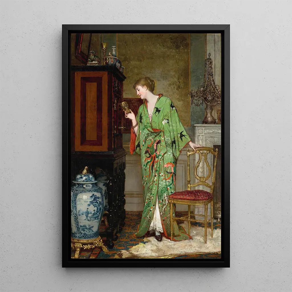 Schilderij La collectionneuse au kimono vert - Jan Verhas | Kunstdruk