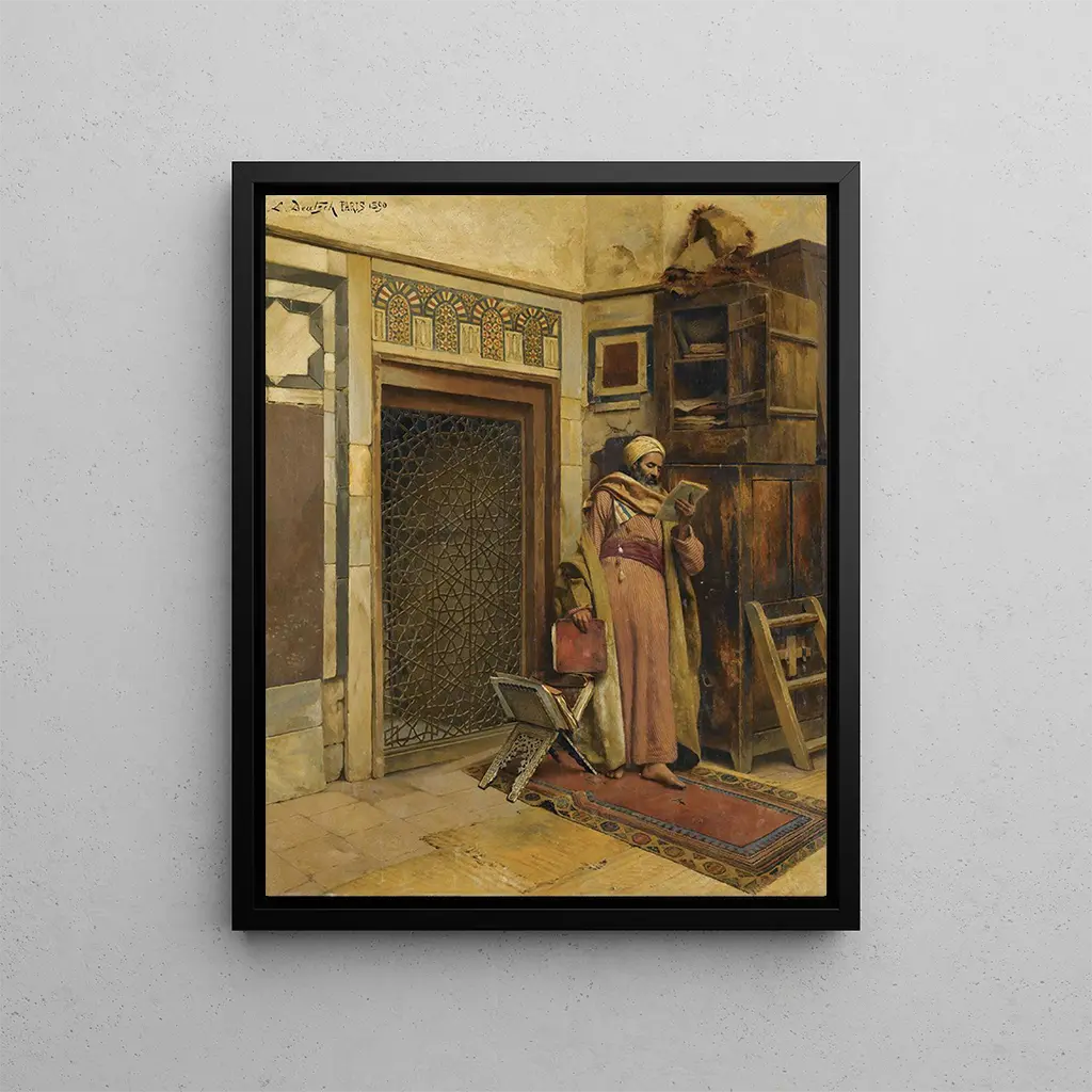Le Savant : een verkenning van kennis In Le Savant dompelt Ludwig Deutsch ons onder in een wereld van wijsheid en reflectie. Dit schilderij toont een geleerde omringd door oude boeken en wetenschappelijke instrumenten, symbolen van de zoektocht naar kennis. De rijke tinten en de delicate schaduwen creëren een sfeer van sereniteit en concentratie, terwijl het licht de details van de omringende objecten benadrukt. Elk element van de compositie lijkt een verhaal te vertellen, de kijker uit te nodigen om na te denken over kennis en intellectuele nieuwsgierigheid, waardoor deze kunstdruk van de Savant een werk is dat zowel inspirerend als contemplatief is. Ludwig Deutsch : een virtuoos van het orientalism Ludwig Deutsch, Oostenrijkse schilder uit de 19e eeuw, is beroemd om zijn orientalisme werken die de essentie van Midden-Oosterse culturen vastleggen. Geïnspireerd door zijn reizen naar Egypte en Turkije, blinkt Deutsch uit in het weergeven van scènes uit het dagelijks leven, waarbij realisme en romantiek worden gecombineerd. Zijn minutieuze stijl en zijn vermogen om te spelen met licht en texturen maken hem tot een belangrijke figuur binnen de orientalisme beweging. Door zijn schilderijen nodigt Deutsch ons uit om een wereld te ontdekken die rijk is aan kleuren en tradities, terwijl hij de Westerse percepties van het Oosten in vraag stelt. Een decoratief stuk met vele voordelen De kunstdruk van de Savant vormt een ideale decoratieve keuze voor wie zijn leefruimte wil verrijken. Of het nu in een kantoor, bibliotheek of woonkamer is, dit doek brengt een vleugje elegantie en verfijning. De kwaliteit van de afdruk en de trouw aan het originele werk garanderen een indrukwekkend visueel resultaat dat de aandacht van iedereen zal trekken. Door dit schilderij in uw inrichting te integreren, kiest u voor een werk dat niet alleen uw interieur verfraait, maar ook een diepe reflectie over kennis en wijsheid oproept, waardoor er een intellectuele dimensie aan uw ruimte wordt toegevoegd.
