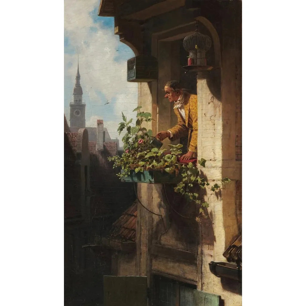Carl Spitzweg, een iconische figuur van de Duitse romantiek, wist de essentie van het dagelijks leven vast te leggen in zijn kunstdrukken. Geboren in 1808, werd hij beïnvloed door de romantische beweging die de natuur en menselijke emoties waardeerde. Spitzweg begon zijn carrière als amateurkunstenaar terwijl hij als apotheker werkte, wat hem in staat stelde het leven vanuit verschillende hoeken te observeren. Zijn kunstdrukken, vaak doordrenkt met humor en tederheid, weerspiegelen een tijd waarin het individu probeerde zich te verbinden met de natuur en zijn eigen aspiraties. "La mansarde I" is een perfect voorbeeld van zijn unieke stijl, die realisme en poëzie combineert.