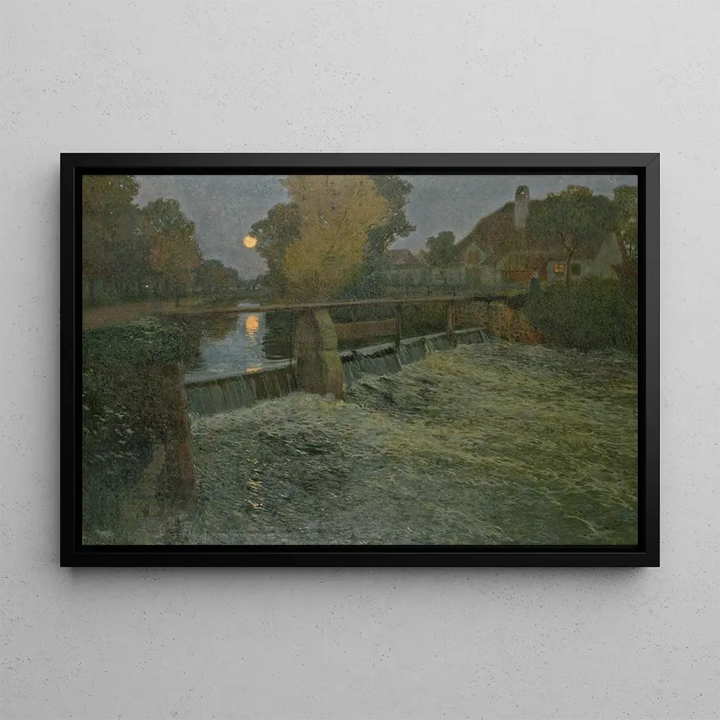 L'Écluse : een symfonie van licht en water De kunstdruk L'Écluse van Rudolf Quittner dompelt ons onder in een wereld waar natuur en architectuur harmonieus samenkomen. De levendige kleuren en de delicate nuances van blauw en groen roepen de rust op van een waterlandschap. De techniek van Quittner, die olieverf en vloeiende penseelstreken combineert, creëert een bijna dromerige sfeer, waarin de beweging van het water lijkt vastgelegd in de tijd. Elk detail, van de reflecties op het wateroppervlak tot de schaduwen van de bomen, draagt bij aan een evenwichtige en rustgevende compositie, die de kijker uitnodigt om te ontsnappen en de schoonheid van de natuur te bewonderen. Rudolf Quittner : een meester van het moderne landschap Rudolf Quittner, kunstenaar van de 20e eeuw, wordt erkend om zijn vermogen om licht en de essentie van de natuur vast te leggen in zijn werken. Geïnspireerd door de impressionistische beweging, ontwikkelde hij een unieke stijl die realisme en abstractie combineert. Quittner heeft een groot deel van zijn carrière gewijd aan het verkennen van de landschappen van zijn geboorteland, op zoek naar het vastleggen van de vergankelijke schoonheid van natuurlijke scènes. Zijn werk, hoewel minder bekend dan dat van sommige van zijn tijdgenoten, heeft een significante invloed gehad op de moderne landschapskunst en heeft vele kunstenaars door de generaties heen geïnspireerd. Een decoratief stuk met vele voordelen De kunstdruk van L'Écluse is een ideaal decoratief stuk om elke leefruimte te verrijken, of het nu een woonkamer, kantoor of slaapkamer is. De kwaliteit van de afdruk en de trouw aan het originele kunstwerk garanderen een onmiskenbare esthetische aantrekkingskracht. Door dit schilderij in uw interieur te integreren, brengt u een vleugje rust en natuurlijke schoonheid in uw huis. De doek van Quittner, met zijn rustgevende nuances en contemplatieve sfeer, zal uw gasten aanspreken en een warme en gastvrije sfeer creëren.