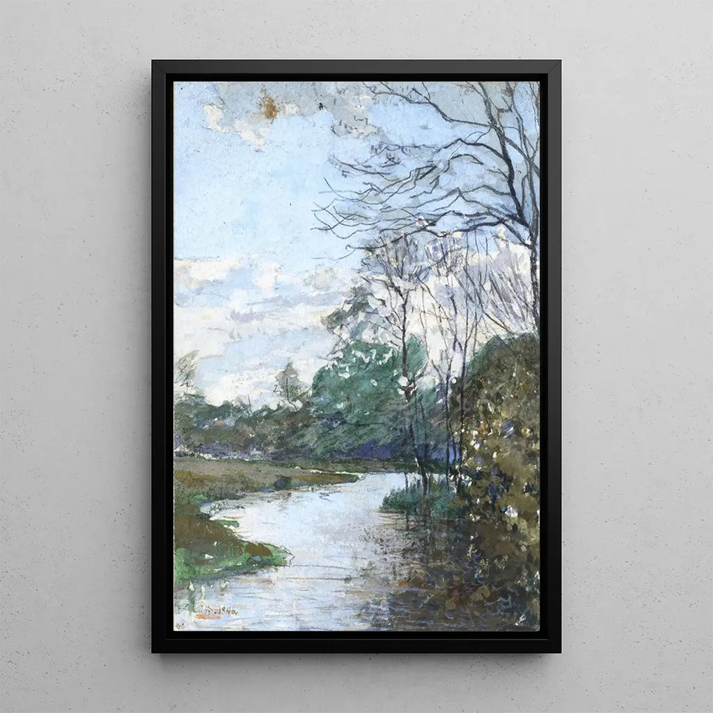 La kunstdruk de Partie sur la Würm près de Planegg offre une vue saisissante d'un paysage bucolique, où la rivière serpente doucement entre les arbres. Ludwig Bolgiano, avec son coup de pinceau délicat, parvient à capturer la lumière qui danse sur l'eau, créant des reflets scintillants qui animent la scène. Les nuances de vert et de bleu se mêlent harmonieusement, évoquant une atmosphère paisible et sereine. Ce tableau invite à la rêverie, transportant le spectateur au cœur de la nature, loin du tumulte urbain.