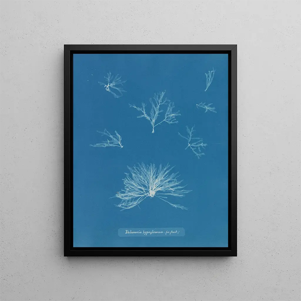 In de fascinerende wereld van de botanische kunst onderscheidt het werk "Delesseria hypoglossum in de vruchten" van Anna Atkins zich door haar verfijning en precisie. Dit stuk, emblematisch voor de botanische fotografie van de 19e eeuw, illustreert niet alleen de schoonheid van natuurlijke vormen, maar ook de technische innovatie van die tijd. Anna Atkins, pionier in het gebruik van cyanotypie, wist de essentie van de natuur vast te leggen, waarbij ze algen en planten transformeerde tot ware kunstwerken. Ver verwijderd van een eenvoudige wetenschappelijke studie, is dit werk een ode aan de natuur, een visuele verkenning die de kijker uitnodigt zich onder te dompelen in het complexe en fascinerende universum van de plantwereld.