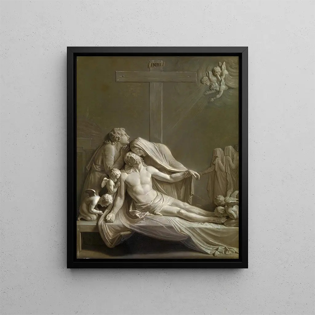 Reproductie Déposition après Antonio Canova - Bernardino Nocchi – Boeiende introductie De Déposition après Antonio Canova, een iconisch werk van Bernardino Nocchi, roept diepe emoties op door zijn delicate en respectvolle interpretatie van een meesterwerk uit de neoclassicistische periode. Deze kunstdruk, hoewel trouw aan het origineel, biedt een nieuw perspectief op de aangrijpende scène van de afname van het kruis. Nocchi, geïnspireerd door Canova, slaagt erin de essentie van lijden en verlossing vast te leggen, waardoor de kijker wordt meegenomen op een spirituele reis. Het werk onderscheidt zich door zijn vermogen om te ontroeren, contemplatie te stimuleren en het belang van opoffering te benadrukken. Stijl en uniekheid van het werk De stijl van Nocchi wordt gekenmerkt door een opmerkelijke fijnheid en precisie. De Déposition, hoewel een kunstdruk, onderscheidt zich door zijn interpretatie van vormen en volumes. De menselijke figuren, met grote aandacht voor detail gesculpteerd, lijken bijna levend, doordrenkt met een expressiviteit die de tijd overstijgt. De plooien, zowel vloeiend als dynamisch, getuigen van een technische meesterschap dat de grootste beeldhouwers herinnert. Het licht speelt een essentiële rol in dit werk, benadrukt de details en creëert een sfeer die zowel plechtig als intiem is. Elk element, van het gezicht vol verdriet tot de uitgestrekte handen die het lichaam van Christus ondersteunen, draagt bij aan een harmonieuze en emotionele compositie. De kunstenaar en zijn invloed Bernardino Nocchi, een gerenommeerde beeldhouwer uit de 19e eeuw, heeft zich weten te vestigen als een belangrijke kunstenaar in het artistieke landschap van zijn tijd. Opgeleid in de schaduw van grote meesters, ontwikkelde hij een eigen stijl terwijl hij zich liet inspireren door klassieke werken. Zijn bewondering voor Antonio Canova is duidelijk zichtbaar in zijn Déposition, waarin hij hulde brengt aan de gevoeligheid en grootsheid van het originele werk. Nocchi heeft de principes van het neoclassicisme geïntegreerd en er zijn persoonlijke toets aan toegevoegd, wat een overgang markeert naar meer moderne vormen. Zijn invloed blijft vandaag de dag bestaan, zowel op het gebied van beeldhouwkunst als in de kunst in het algemeen, waar zijn inzet voor schoonheid en emotie vele hedendaagse kunstenaars blijft inspireren. Een uitzonderlijke wanddecoratie ondertekend door Artem Legrand