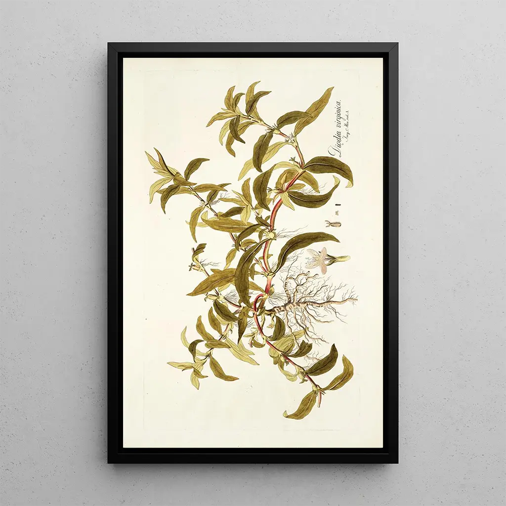 De kunstdruk van Diodia virginica, een werk van Nikolaus Joseph Freiherr von Jacquin, onthult een fascinerende fijnheid. De nuances van groen en wit vermengen zich harmonieus, waardoor een rustgevende en contemplatieve sfeer ontstaat. De aquareltechniek, die met finesse wordt toegepast, maakt het mogelijk om de details van de bladeren en bloemen vast te leggen, en eert de vergankelijke schoonheid van de natuur. Elke penseelstreek lijkt de levendigheid uit te stralen, en nodigt de kijker uit om onder te dompelen in een wereld van sereniteit en natuurlijke schoonheid. Dit schilderij roept een diepe verbinding op met de flora, een viering van de botanische diversiteit.