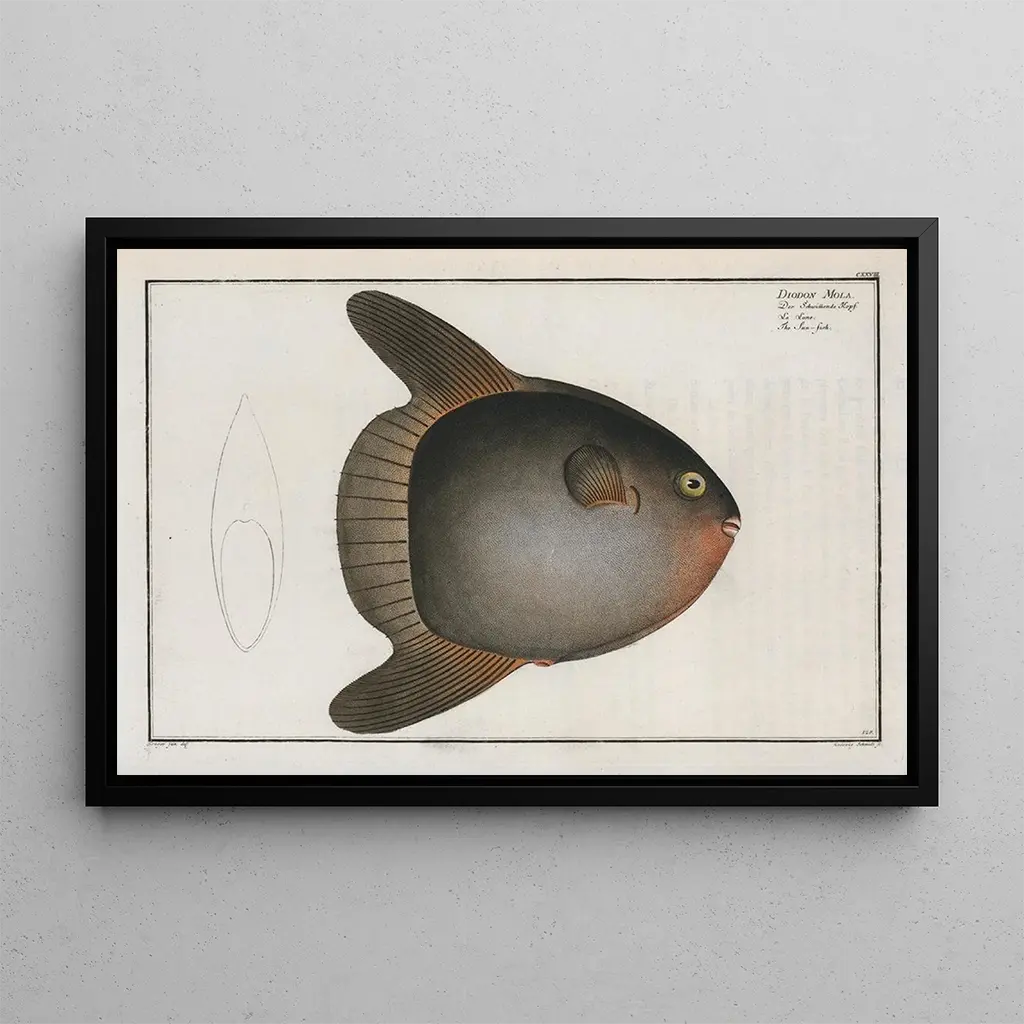 Diodon Mola, de maanvis: een reus uit de zeeën in majesteit De kunstdruk van Diodon Mola, de maanvis, brengt ons naar de diepe wateren waar deze verbazingwekkende vis leeft. Met zijn unieke vorm en zachte kleuren roept dit kunstwerk de majesteit en de singulariteit op van deze oceaanbewoner. De techniek van de illustratie benadrukt de fascinerende details van zijn huid en stekels, waardoor een sfeer ontstaat die zowel intrigerend als rustgevend is. Dit schilderij nodigt uit tot het ontdekken van een onderwaterwereld vol diversiteit en schoonheid. Marcus Elieser Bloch: een meester in de illustratie van de zoologie Marcus Elieser Bloch, natuuronderzoeker en kunstenaar uit de achttiende eeuw, wordt erkend voor zijn belangrijke bijdragen aan de illustratie van mariene soorten. Zijn werken, die wetenschappelijke precisie en esthetiek combineren, getuigen van zijn inzet voor de documentatie van de waterfauna. Geïnspireerd door de vooruitgang van zijn tijd, wist Bloch de essentie van mariene wezens vast te leggen, waardoor zijn illustraties niet alleen informatief maar ook visueel boeiend zijn. Zijn nalatenschap blijft voortleven, en inspireert vele kunstenaars en wetenschappers. Een decoratief stuk met vele voordelen De kunstdruk van Diodon Mola is een decoratief stuk dat je leefruimte zal verrijken. Of het nu in een woonkamer, kantoor of slaapkamer is, dit kunstwerk brengt een vleugje originaliteit en elegantie. De hoge kwaliteit van de afdruk en de trouw aan de oorspronkelijke kleuren maken van dit doek een ideale keuze voor natuurliefhebbers en kunstliefhebbers. Door dit kunstwerk in je interieur te integreren, creëer je een inspirerende omgeving die de schoonheid en diversiteit van de oceanen viert.